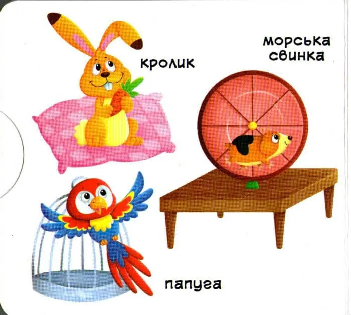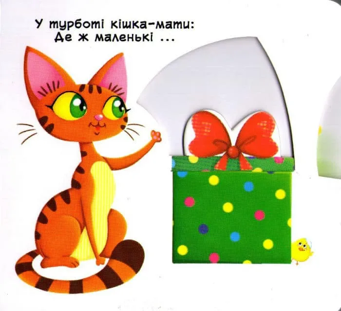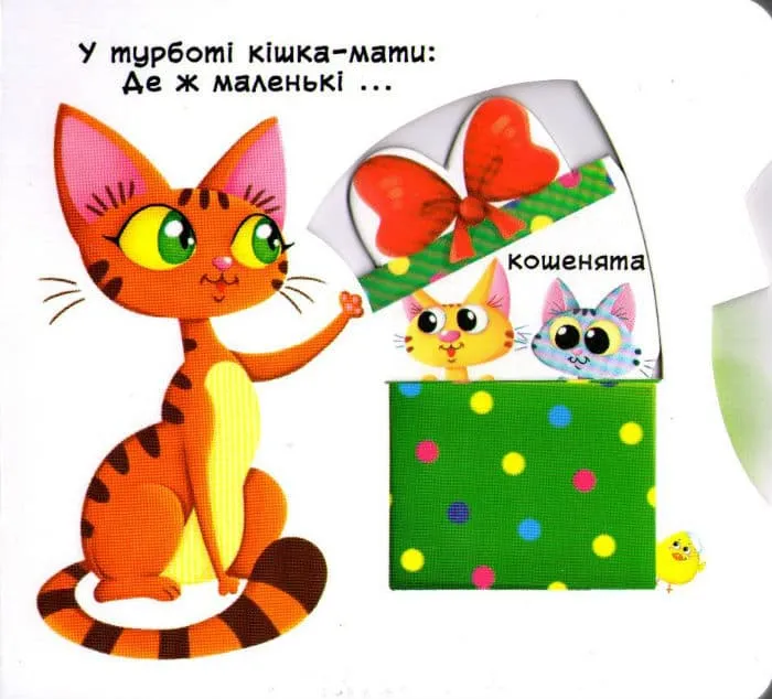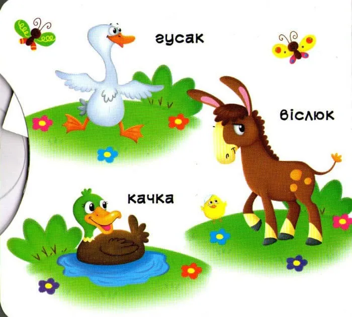 Кнажка-картонка на сторінках якої Ви можете зустріти свійських тваринок. Також в книжці присутні механізми, які роблять її цікавішою для малечі.