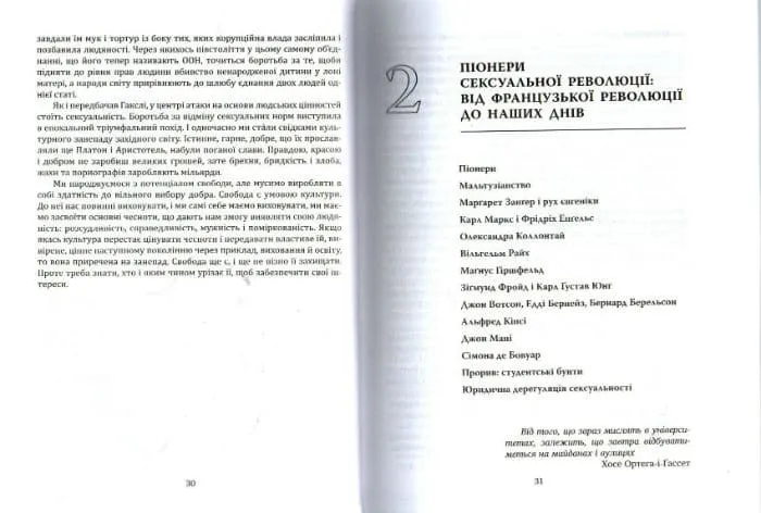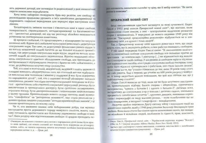 “Глобальна сексуальна революція” – так можна коротко схарактеризувати ті процеси у сферах культури й моралі, що зараз відбуваються на Європейському та Американському континентах. Автор простежує її витоки, починаючи від лівацьких ідеологій ХІХ – початку ХХ століть, через феміністичні рухи, студентські бунти і сексуальну революцію 1968 року й донині. Складником цих процесів є “ґендерний мейнстрімінг” – програма перевиховання, що її провадять із населенням уряди, керівництво ЄС та деякі ЗМІ, нівелюючи в головах громадян здатність розрізняти чоловіків і жінок та відрізняти взаємну сексуальну привабливість статей – основу продовження людського роду – від інших форм задоволення інстинкту, руйнуючи цим інституції шлюбу і сім’ї.
