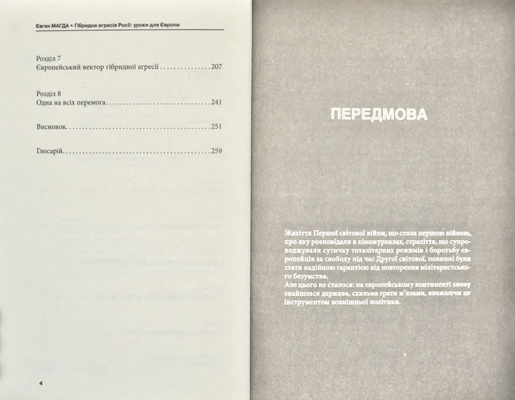 «Гібридна агресія Росії. Уроки для Європи» — містке і змістовне дослідження російської агресії, яке пояснює її причини, описує особливості гібридної війни проти України, дає чіткий аналіз того, що відбувається і пропонує шляхи вирішення даного конфлікту.