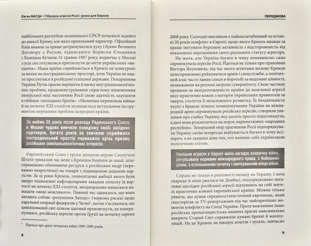 Написана політичним експертом Євгеном Магда, книга «Гібридна агресія Росії. Уроки для Європи» допоможе читачеві зрозуміти суть конфлікту, його особливості та методи протидії агресорові.