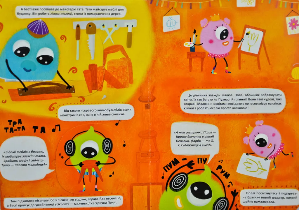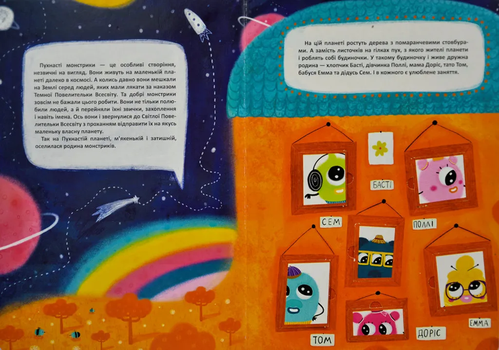 Книжка для маленьких фантазерів запрошує до нової планети, де мешкають добрі чудернацькі пухнастики - веселі казкові персонажі, які в цікавій і ненав'язливій формі розповідають про важливі речі. Історія, що відбулася з родиною монстриків, навчить малечу того, як важливо займатися саме тією справою, що вдається нам найкраще.