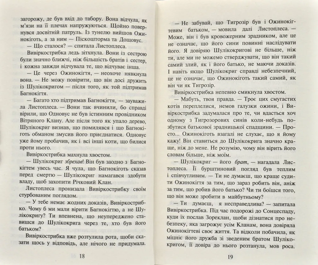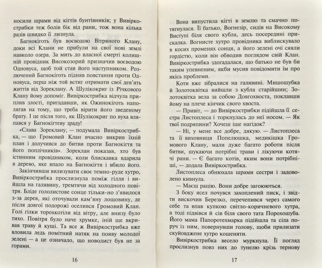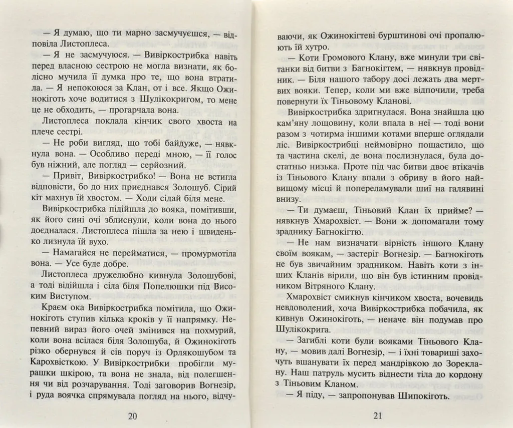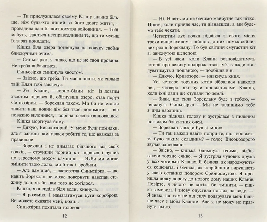 П’ята книга другого циклу «Нове пророцтво» серії «Коти-вояки».На новій території стежки чотирьох Кланів розійшлися в різні боки. Тепер кожен з них знову сам по собі, як і було з давніх-давен заповідано вояцьким правильником. Проте небезпеки, що чатують у цих незвіданих місцях, можна подолати лише разом. Громові коти завжди готові простягнути лапу допомоги своїм сусідам, та найбільша біда приходить саме до їхнього табору — нещадний ворог, що палає помстою. У ці темні часи вони мусять виявити всю свою силу та мужність, а дехто — зробити нелегкий вибір, від якого залежить доля всього Клану.