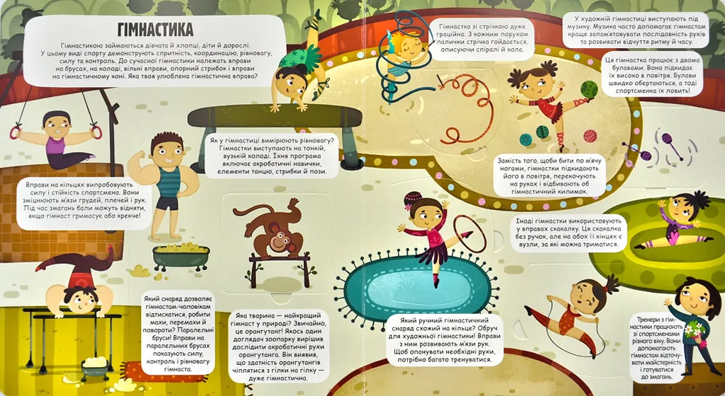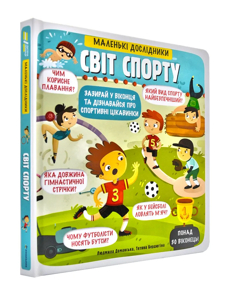 «Маленькі дослідники» вирушають у «Світ спорту». Книжка має понад 30 віконечок, у яких на кожній сторінці видання містяться цікаві факти про різні види спорту. Читачі дізнаються багато цікавого про бейсбол, плавання, гімнастику, футбол, теніс, лижі та родео. Який з видів спорту найбезпечніший? В якій країні придумали футбол? Які тварини беруть участь у родео? Ці та інші цікаві факти чекають на Вас у цій яскравій книзі! «Світ спорту» – це дев'ята книга з улюбленої серії «Маленькі дослідники» видавництва #книголав. Перше видання – «Моє дивовижне тіло» стало абсолютним бестселером і поповнило домашні бібліотеки біля 30 000 українців, разом із ним до числа лідерів увійшли: «Світ тварин», «Динозаври», «Космічний світ», «Підводний світ» та «Транспорт».