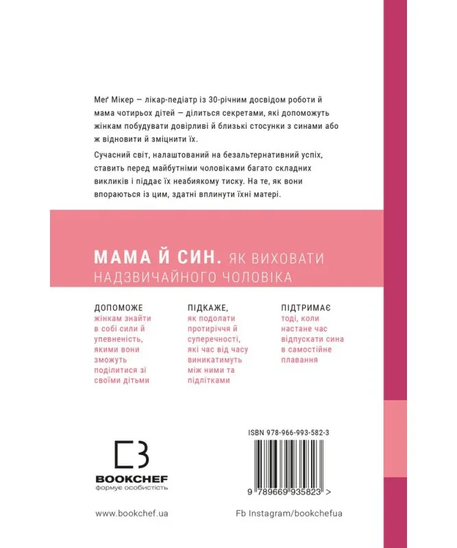 Меґ Мікер — лікар-педіатр із 30-річним досвідом роботи й мама чотирьох дітей — щедро ділиться секретами, які допоможуть жінкам побудувати довірливі й близькі стосунки з синами або ж відновити й зміцнити їх. Сучасний світ, налаштований на безальтернативний успіх, ставить перед майбутніми чоловіками багато складних викликів і піддає їх неабиякому тиску. На те, як із цим усім впораються хлопці, здатні вплинути їхні матері. Книга «Мама й син» допоможе мамам знайти в собі сили й упевненість, якими вони зможуть поділитися зі своїми дітьми; підкаже, як подолати протиріччя й суперечності, які час від часу виникатимуть між ними та підлітками; підтримає тоді, коли настане час відпускати сина у самостійне плавання.