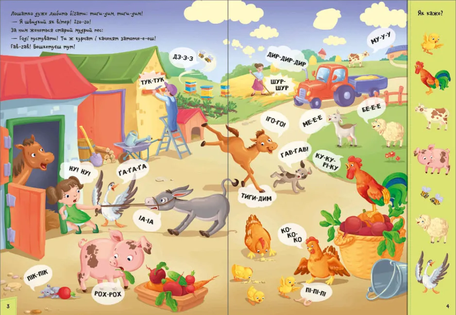 зручний формат книги на картоні;зображення у книзі прості, зрозумілі та достатнього розміру для розглядання дитиною;поєднання декількох активностей – вивчення звуків, звуконаслідування, розглядання, пошук необхідних предметів – посилює пізнавальний ефект для малюка.
