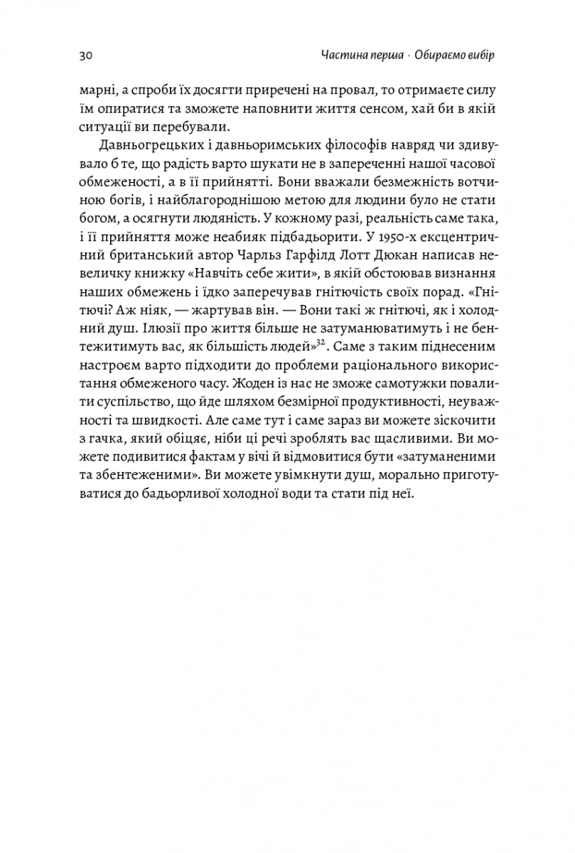 - На прикладах та історіях з античності автор розповідає, як відкидати неважливе та займатися тим, що є найбільш цінним саме для вас.