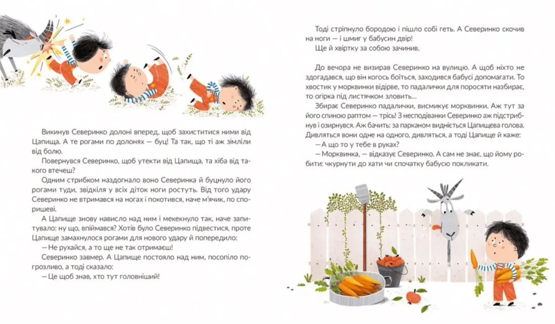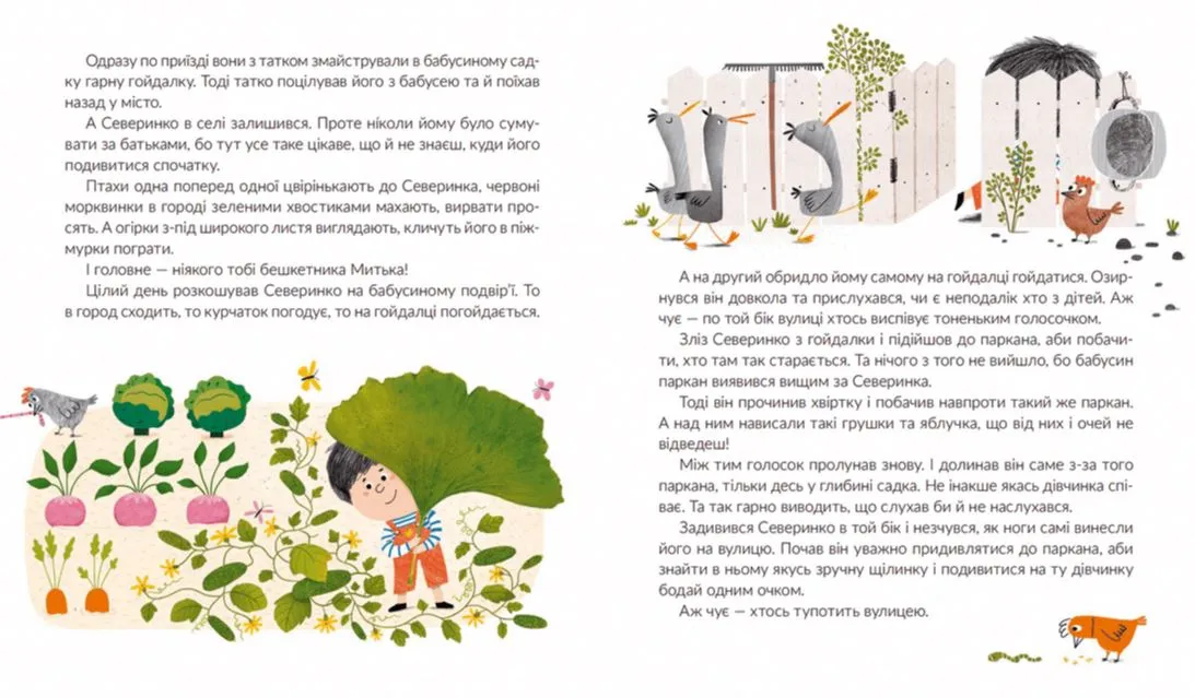 Разом із Северинком маленькі читачі крок за кроком пізнаватимуть таємниці світу, який відкривається, якщо не побоятися вперше вийти за бабусині ворота. А завдяки ілюстраціям Наталі Кудляк ці пригоди будуть веселими і дуже-дуже динамічними, як і мріяв автор.