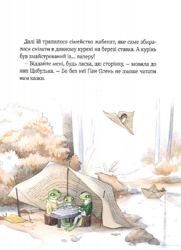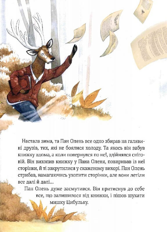 Одного дня ви розкриєте цю книжку і поринете у світ яскравих пригод, сповнених подиху теплого вітру та усмішок друзів. На вас чекатиме шляхетний Пан Олень, якому мишка Цибулька допомагає відшукати загублені сторінки з книжки казок. Ви опинитеся у чарівній атмосфері Різдва у родині пухнастих кроленят. Завітаєте до старого самотнього ведмедя, який знайшов родину солов’їв, що оселилися в його поштовій скриньці…