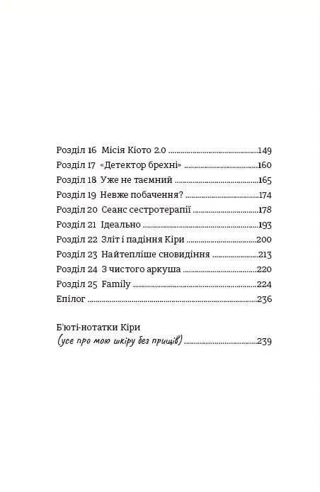 У підліток багато проблем – перша закоханість, непорозуміння з батьками, сварки з найкращою подругою, зрештою, прищі. Кіра, головна героїня цієї історії через це дуже страждає. Їй 14 років, вона малює манґу, веде блог в інсті, має собаку Йоко і збирається до поїздки в омріяну Японію, але всі думки тільки про те, як очистити свою шкіру. Похід до косметолога був невдалим, в той самий день посварилася з татом, втомлена та схвильована Кіра заснула і їй приснилася фея Харумі. Вона знає все про догляд за шкірою і пропонує свою допомогу. Дівчина прокидається і вирішує спробувати те, що дізналася від феї, а цей процес змальовує у своєму скетчбуці. Це корисні поради про те, що робити, якщо виліз прищ, як підібрати косметику для щоденного використання, яка їжа корисна або шкідлива для шкіри та ще багато інших речей. Авторка книжки – ще й професійна косметологиня, тому тими рекомендаціями, про які пише Кіра можна сміло скористатися, щоб покращити стан своєї шкіри і забути про таку проблему, як прищі. Водночас це історія-підтримка для дівчат-підліток, які переживають великі зміни, як от переїзд в інше місто та навчання у новій школі, чи перше кохання, або першу серйозну суперечку з найкращою подругою і для тих, хто вирішив нарешті полюбити себе. «Напевно підліткам не дуже було б цікаво читати серйозну книжку про прищі з нудними повчаннями косметолога? Саме тому я вигадала цю дивну історію, проживши яку, можна дізнатися все про догляд за шкірою і прищі . Ну майже все :) У мене підростає двоє донечок. Старшій 14 років і мені, як мамі, хотілося легко і ненав'язливо донести корисні поради про шкіру, їжу, здоровий спосіб життя. Я дуже вірю, що читачі та читачки полюблять головну героїню, а їхній шлях до чистої шкіри тепер буде простим і зрозумілим», – Ольга Тітова, авторка книжки.
