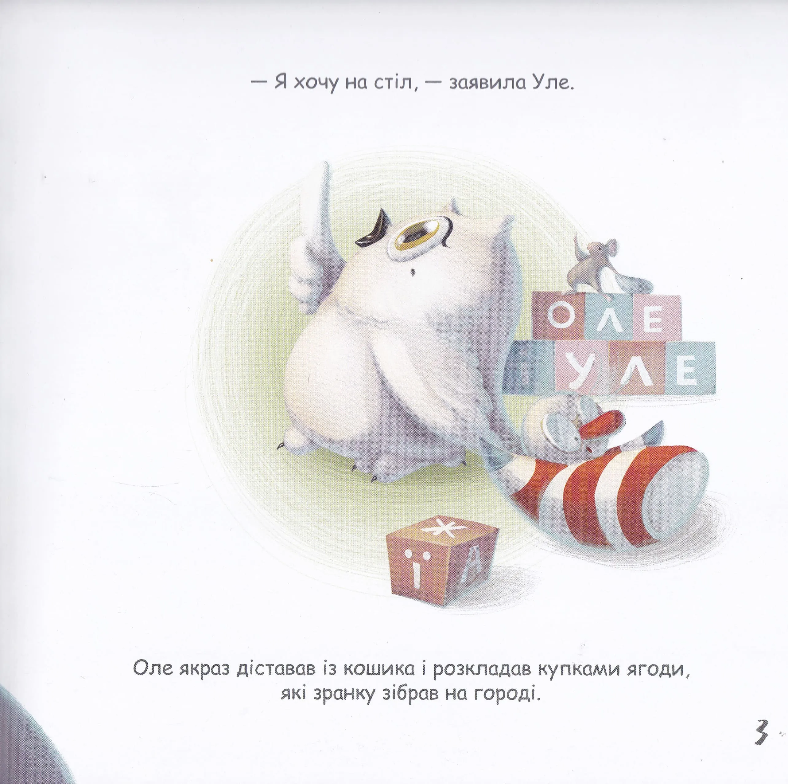 Минулої осені Оле посадив кущі, на яких виросли невідомі, але дуже смачненькі ягідки. Поки Старий намагається з'ясувати їхню назву, маленька Уве, приголомшена неочікуваними новинами, кудись безслідно зникає. У продовженні пригод педантичного бухгалтера Оле та совенятка Уле на діток чекає мила історія про дорослішання і усвідомлення важливої життєвої істини: основне не те, як щось чи хтось називається, а те, любиш ти його, чи ні.