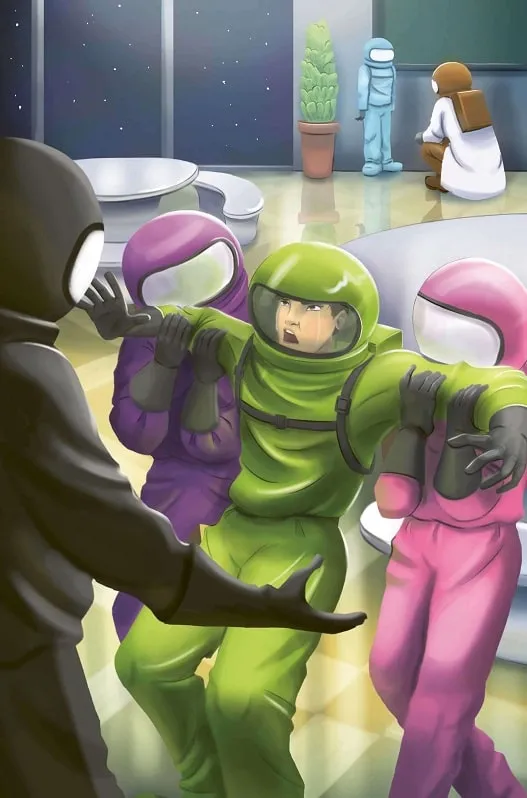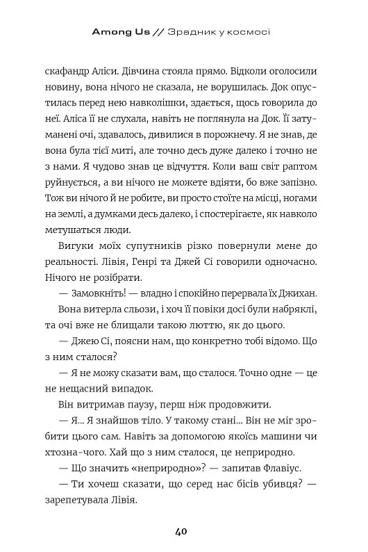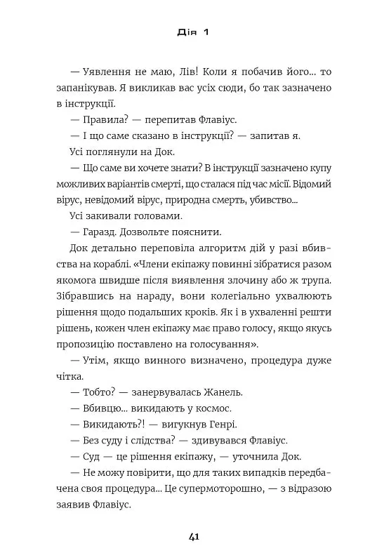 Десять астронавтів і один самозванець, що прагне ліквідувати суперників…Вітаємо на борту найнебезпечнішого космічного корабля всіх часів!В. — юний космонавт на борту патрульного корабля. Робота в нього спокійна, а що головне, геть рутинна. Спільні обіди в їдальні, перевірка електроустановок, налаштування телескопів, очищення кисневих фільтрів… Тож В. з командою не нудьгують! Але коли в лазареті знаходять мертвим одного з членів екіпажу, а біля електрощитової — ще одного, життя перетворюється на кошмар. Схоже, на кораблі є самозванець, що заповзявся всіх знищити!