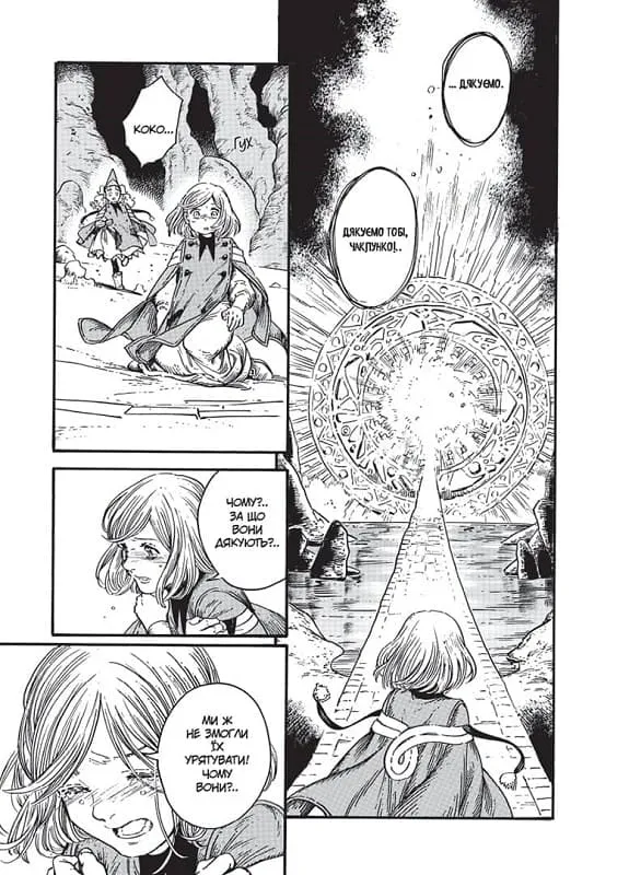 Під час другого чаклунського іспиту на групу Аґатти зненацька напали крислаті — загадкові чаклуни, які застосовують заборонену магію. Одного з учнів, Юіні, вони перетворили на жахливого звіра. І схоже, мають якісь значно лиховісніші плани…Коко, Тетія й учитель Кіфлі намагаються врятувати друзів, однак потрапляють у підземелля, де колись мешкав таємничий і ненависний до чаклунів народ Ромонон. Кіфлі тяжко поранено, Коко й Тетія у відчаї. Що чекає на наших героїв?Вибір між тим, що ти хочеш насправді, а що ні; на що ти здатен — і що тобі не до снаги.