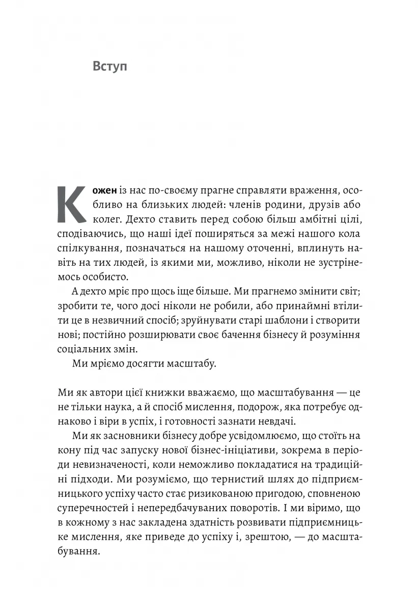 Ключем до масштабування бізнесу є не талант чи стратегія, а підприємницьке мислення, яке можна (і треба) розвивати. У цьому впевнений Рід Гофман — один із найуспішніших підприємців Кремнієвої долини, засновник LinkedIn та ведучий подкасту «Майстри масштабування», на основі якого і побудована ця книжка.У ній вміщені інтерв'ю із лідерами знакових компаній, включаючи Apple, Nike, Netflix, Spotify, Starbucks, Google, Instagram і Microsoft, а також з тими підприємцями, які тільки розпочинають свій шлях, але вже встигли гучно заявити про себе сміливими стартапами — 23andMe, TaskRabbit, Black List і Walker&Co. Додаючи до цього власний досвід засновника та інвестора, Рід Гофман створює унікальний посібник, який надихне вас переосмислити власну справу.Завдяки захопливому сторітелінгу та глибокому аналізу книжка «Майстри масштабування» розвінчує найпоширеніші міфи про бізнес та ділиться дивовижними істинами, дотримуючись яких можна створити унікальний продукт, який зробить світ кращим.