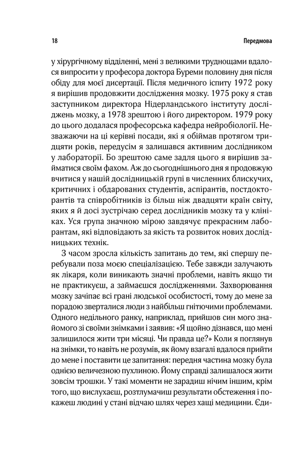 Науково-популярна книга всесвітньо відомого нідерландського нейробіолога й одного з найавторитетніших у світі дослідників мозку є захоплюючою мандрівкою в цю справжню terra incognita людини. Нові наукові дослідження головного мозку людини зайвий раз доводять, як мало ми знаємо про найважливішу частину нашого організму і як багато дивовижних відкриттів чекає попереду.