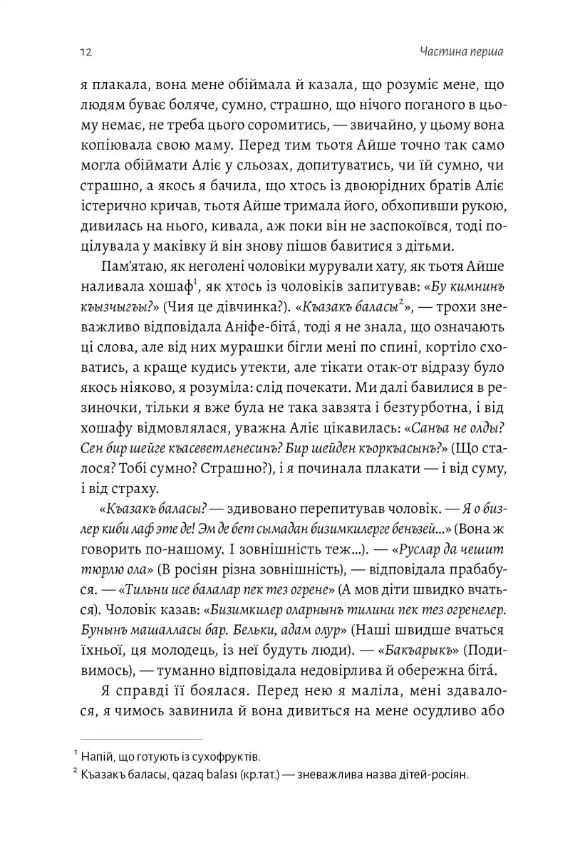 «Аліє, Альона і я. З наших імен, написаних у рядок або стовпчик, можна вивчати історію Криму».Задовго до анексії Криму вона зрозуміла, що українка. Ані дідусь-підполковник КДБ, ані російська кров у венах не стала цьому на заваді. Дитяча дружба із кримською татаркою і знайомство з цією культурою стало зерном, яке згодом переросте у пошук себе і власної національної ідентичності.У романі переплелися кримськотатарська культура, українська література і родинні таємниці. Разом з головною героїнею і її подругами киримли Аліє й українкою Альоною читач проходить довгий шлях від дитинства дівчат аж до анексії Криму Росією.Серед кримчан побутує приказка: «За Перекопом землі немає», мовляв, байдуже, що діється за перешийком, на материку. Роман Анастасії Левкової показує, що земля є з обох сторін Перекопу. Тільки варто її пізнати і зшити — відкрити материк для Криму, а Крим для материка.