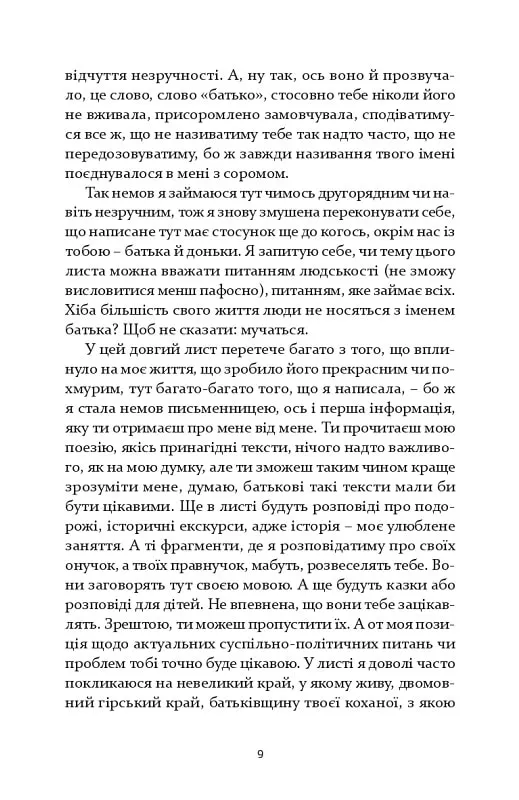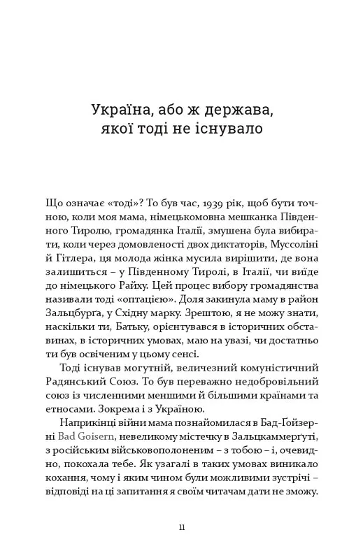 Героїня есеїстичного роману «Лист в Україну», в якій упізнаємо риси й деталі біографії авторки, інтенсивно цікавиться Україною, маючи для цього особисті мотиви (її біологічним батьком був військовополонений офіцер родом з Києва), а водночас вбачаючи чимало паралелей між Україною та своєю батьківщиною – Південним Тиролем, автономною північно-італійською провінцією, понад 60 % населення якої вважає своєю рідною мовою німецьку. Відстежуючи асоціативні, нерідко полемічні повороти оповіді авторки, читачі зможуть збагатитися низкою типових для європейської історії сюжетів – від Середньовіччя з його видатним монархом Максиміліаном І до сучасних подій у змаганні південнотирольських діячів культури за збереження самобутньої культури регіону.
