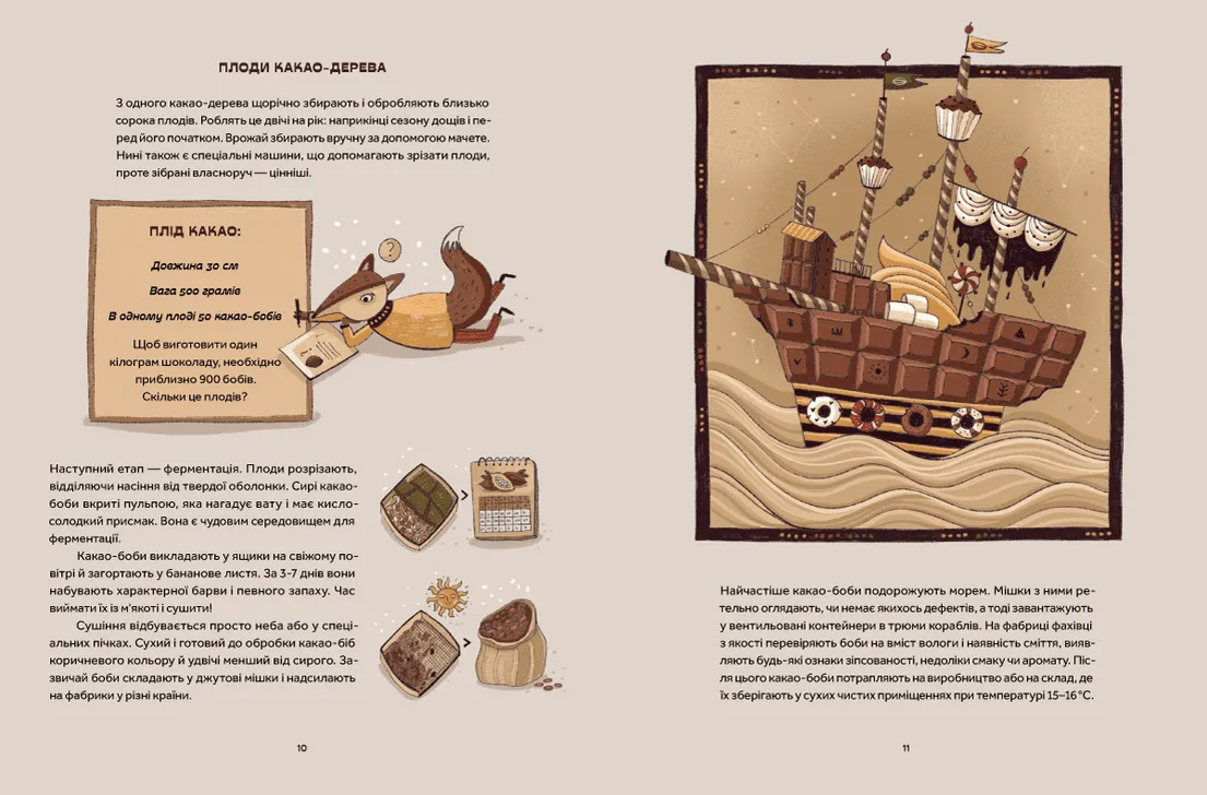 Факти і легенди, наука і магія, захопливі таємниці і смачні рецепти. Ця книжка – путівник історії шоколаду, стежками якої мандрують чарівні лиси Олександри Дікої.