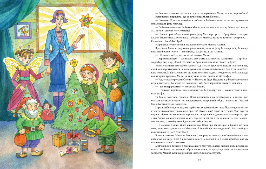 Казкова повість української письменниці Анастасії Шульги з ілюстраціями господині реальної такси Мані Наталії Герасименко розповідає про чарівне місто Фестбург, де живуть ельфи і феї та працює німецький колега святого Миколая Вайнахтсман. Разом з головною героїнею історії — непосидючою і трохи легковажною собачкою читачі поринуть у вир пригод, відчують атмосферу Різдвяних свят, дізнаються, як творяться дива, навчаться дарувати радість та відрізняти справжні добрі справи від підробних.