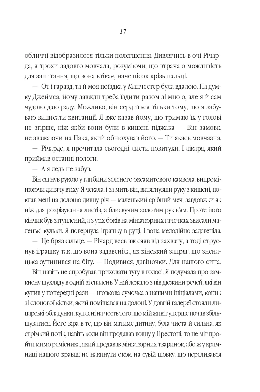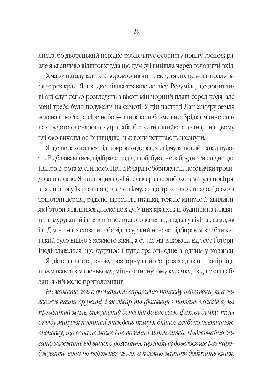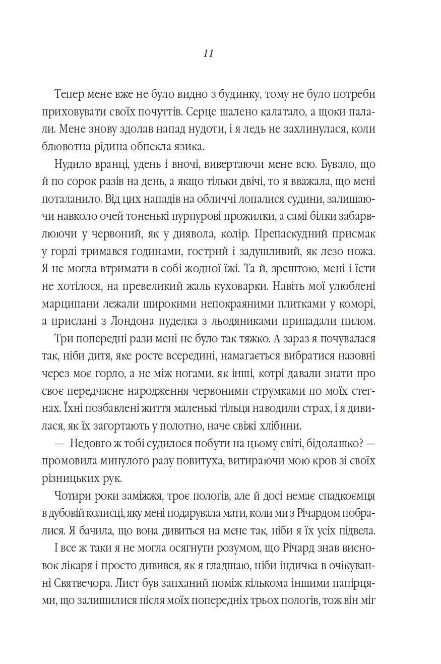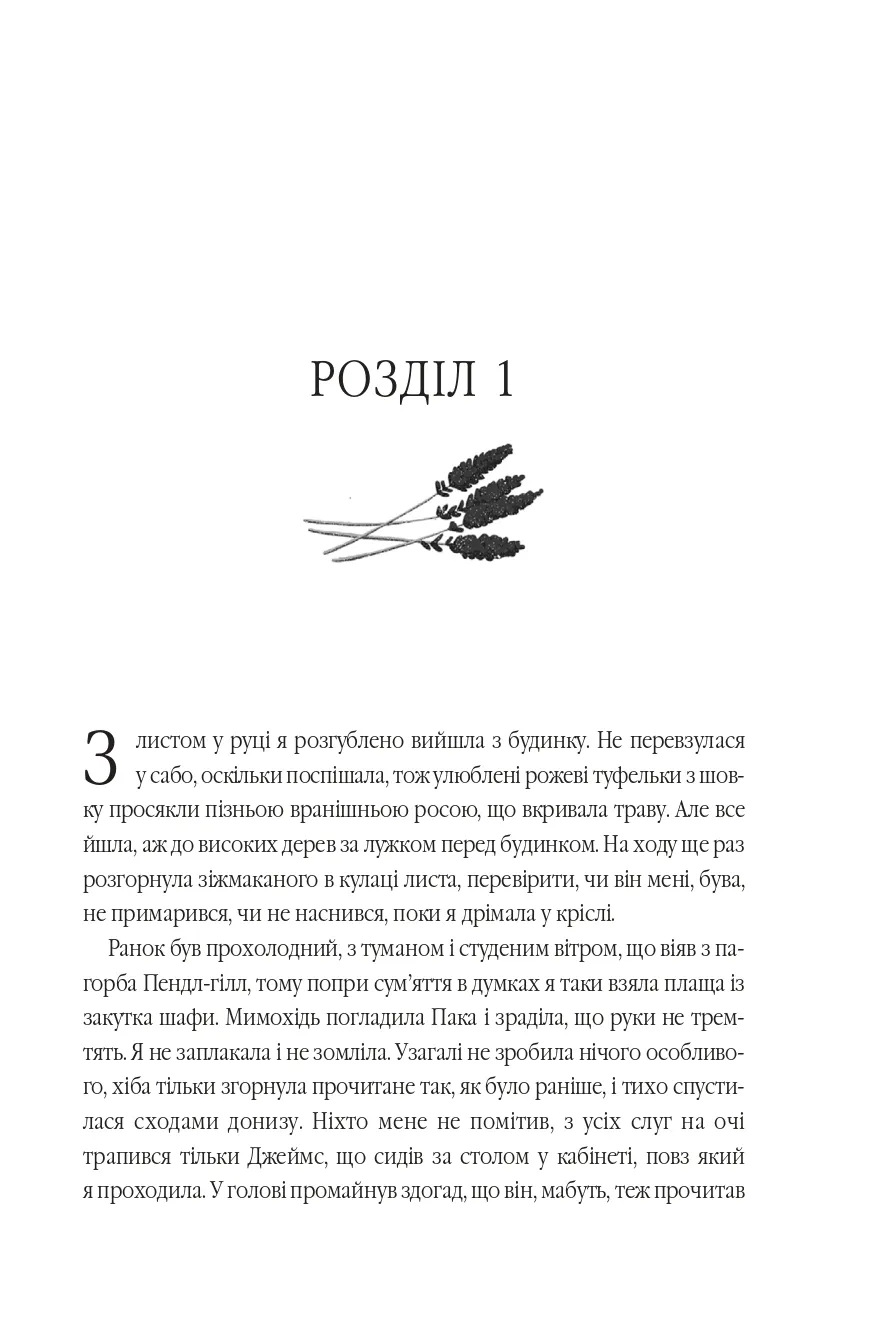 Бестселер The Sunday TimesЩоб врятувати ненароджену дитину, довіртеся чужій людині. Щоб захистити свою таємницю, ризикніть своїм життям.ХVII сторіччя, Ланкастер, Англія.Флітвуд Шатлворт мріє подарувати своєму чоловікові Річарду спадкоємця. Але вона вже тричі втрачала дитину, і четверта вагітність дається їй дуже тяжко. До того ж Флітвуд знаходить серед паперів чоловіка листа від свого лікаря. Той попереджає, що пологи вб’ють молоду пані. Чому ж Річард нічого не сказав їй про цю пересторогу? А до всього графством ще й ширяться чутки про фамільярів - духів, що супроводжують злих чаклунок.Якось у лісі Флітвуд зустрічає Еліс - юну, проте досвідчену повитуху. Трави від неї справді полегшують стан вагітної. Поступово проста дівчина і благородна пані стають майже подругами. Флітвуд сподівається, що знання та досвід Еліс допоможуть їй і дитині вижити. Але селянці дуже небезпечно знатися на травах у часи, коли оголошено полювання на відьом...