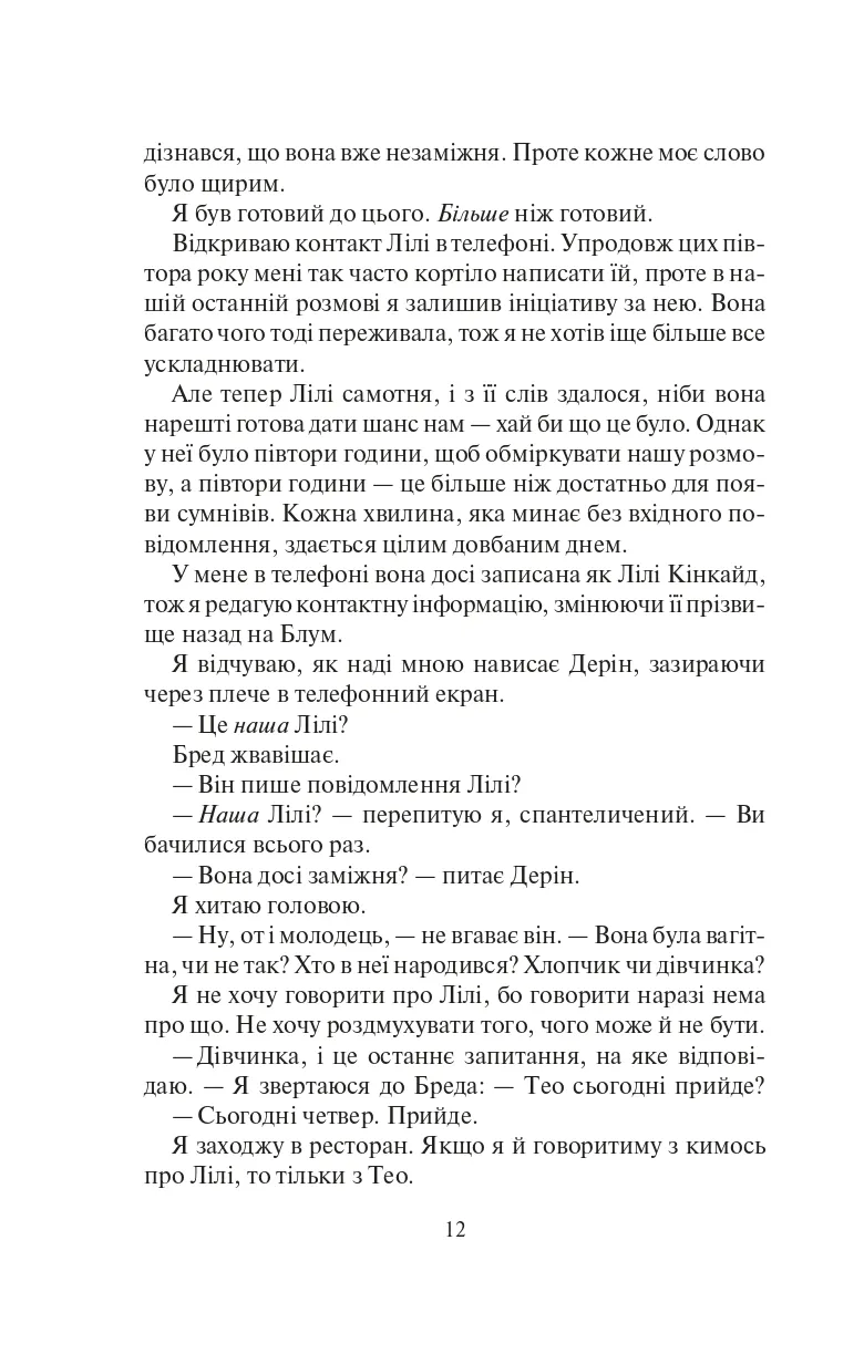 Життя не може складатися лише з роботи, судових позовів та функціонування в режимі зомбі. Але хай би якою рішучою вона була, їй доведеться захищати- не лише себе, а й Еммі. Лілі треба перервати цикл домашнього насильства. Не вона понівечила Райлі, однак вона має залишитися цілісною заради дитини. Заради себе.