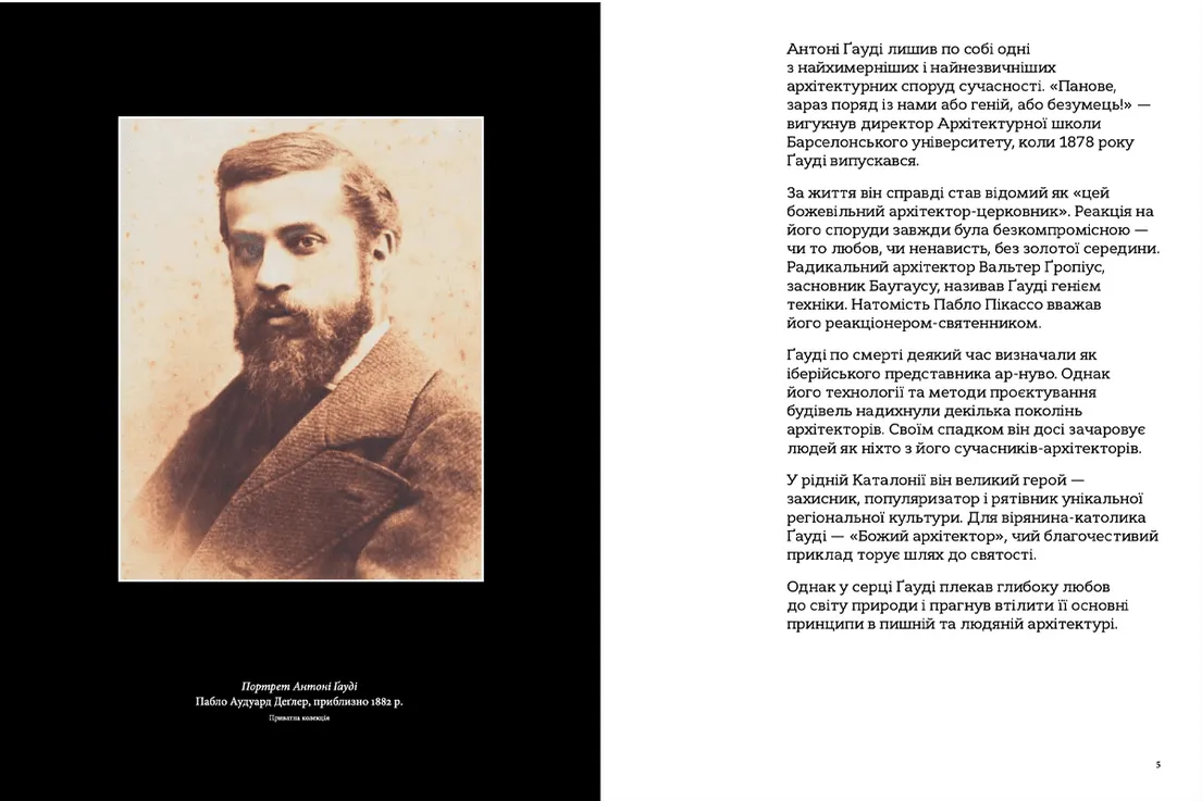 Ця книжка — популярний життєпис Ґауді, доповнений ілюстраціями та світлинами його витворів.
