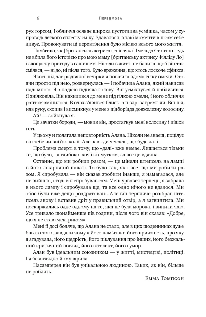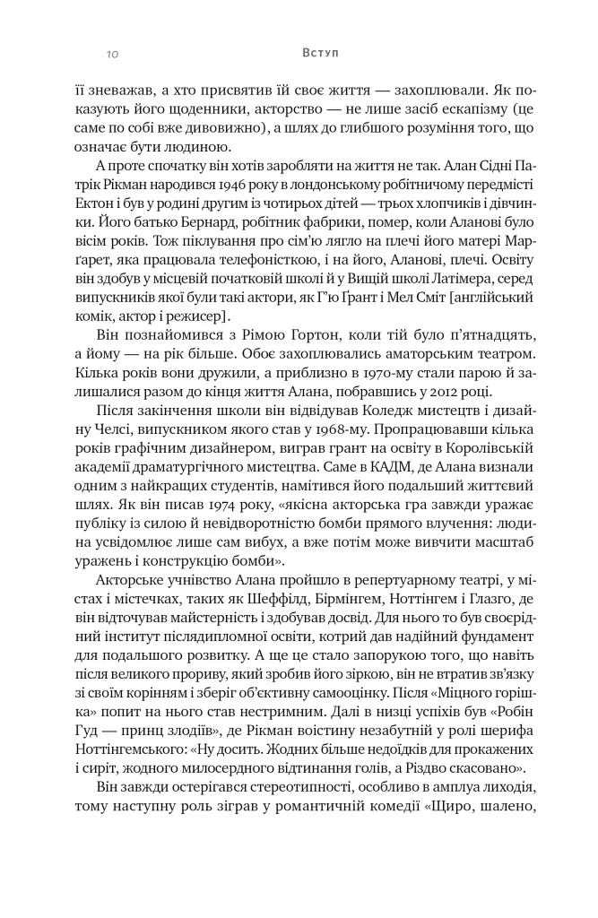 Читати «Шалено, глибоко» — це як перебувати за лаштунками життя Алана Рікмана: дивитися на професора Северуса Снейпа з «поттеріани», Ганса Ґрубера з «Міцного горішка» й полковника Брендона з «Розуму і почуттів». Але не тільки актора, а й режисера, чоловіка, друга, мандрівника. Не на образ, а на справжнього Рікмана. Бо образ — це завжди чиєсь спотворене дзеркало.Його сприймали як пихатого аристократа — а він з юності був відданий лейбористським ідеалам і скептично ставився до умовностей британського роялізму. Його вважали актором, перед чиєю харизмою не встоїть жодна жінка, — а він пів століття був непохитно вірний Рімі Гортон.Він був не таким, як його уявляли. А яким? Збагнути це допоможуть 26 щоденників, які Рікман вів від 1993 року й до смерті у 2016-му. Шалено, глибоко, іронічно, щиро. Де не кожен день — свято, але кожен — життя.