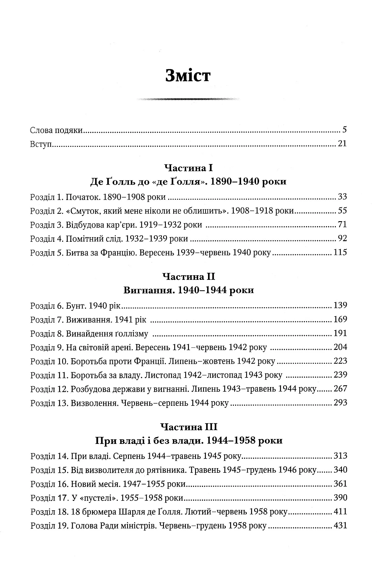 Однак як генералу вдалося посісти найвищу державну посаду? В чому полягала його неординарність? Що формувало світогляд цієї людини? Як йому вдалося зібрати під свої знамена різнорідну масу французьких патріотів під час німецької окупації? Якими були його стосунки з видатними діячами ХХ століття — прем’єр-міністром Британії Черчиллем, президентом США Рузвельтом, канцлером Німеччини Аденауером, лідерами інших держав?