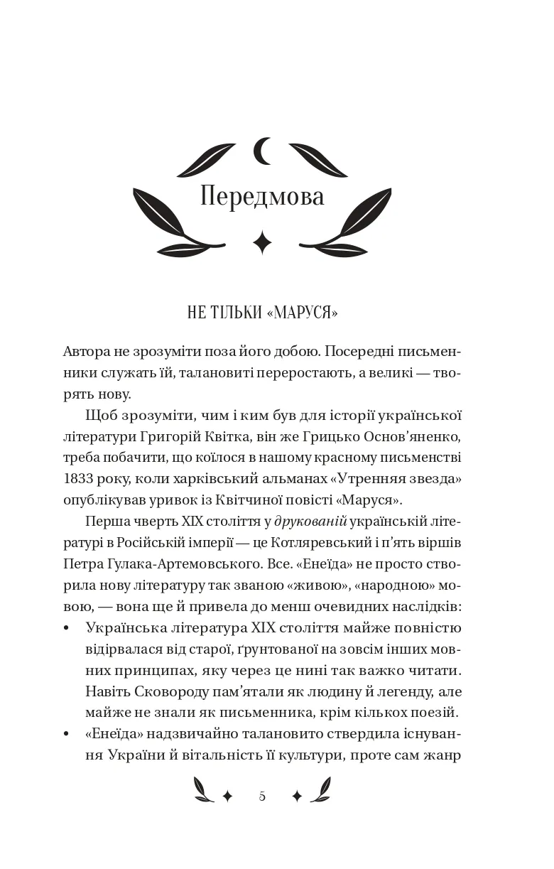 Вперше за останні сто років проза Григорія Квітки-Основ’яненка повертається до читачів такою, як вона була насправді. Зі своїм ритмом та особливою слобожанською говіркою. Мстиві відьми, мерці, які справляють Великдень, зачаровані скарби, перекотиполе — свідок проти вбивці… Перед нами постає яскрава й містична картина життя на українських землях від Конотопа до Харкова. Повісті Квітки-Основ’яненка — це ще і європейські сюжети, перенесені на вітчизняний ґрунт, проповіді, літературна полеміка, мовна гра. І про це ніколи не пишуть у підручниках.