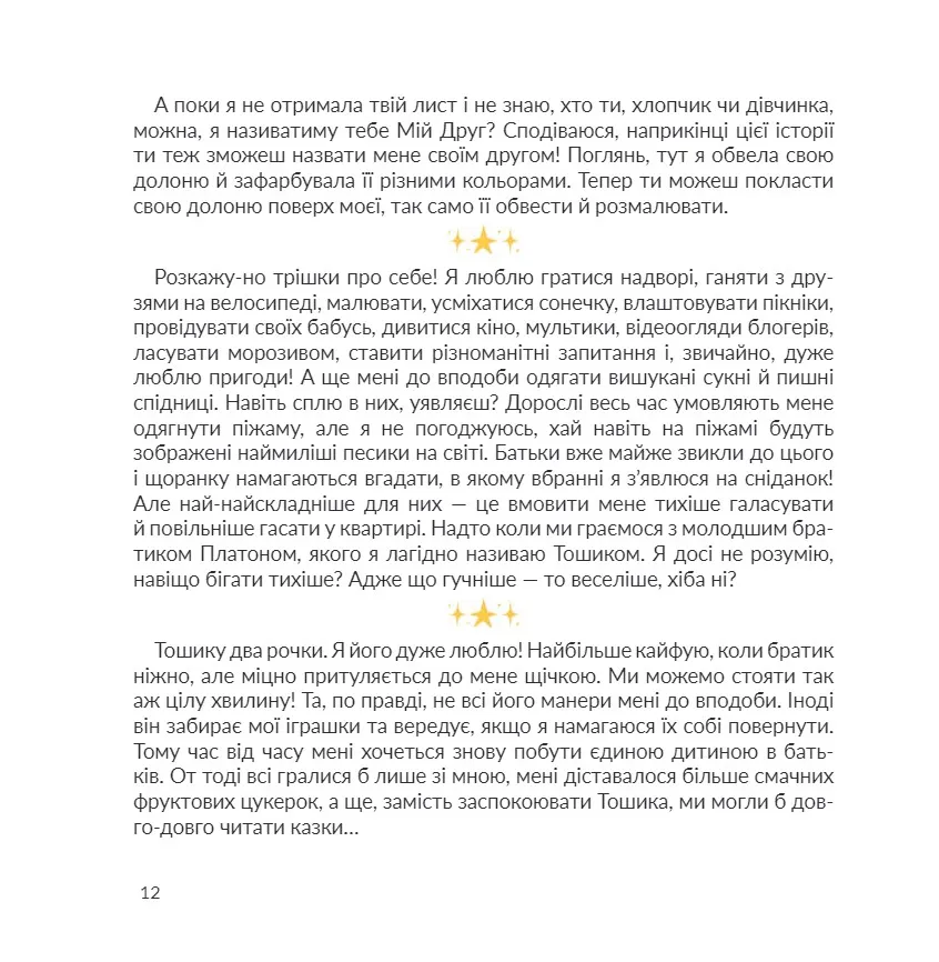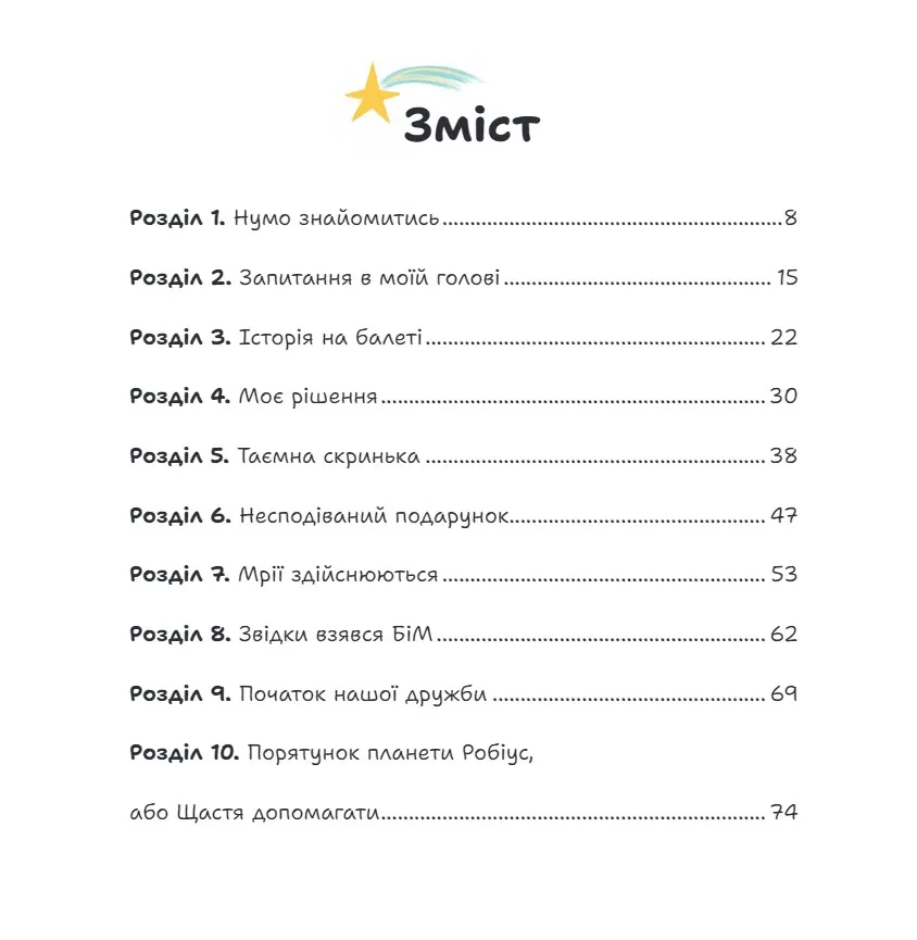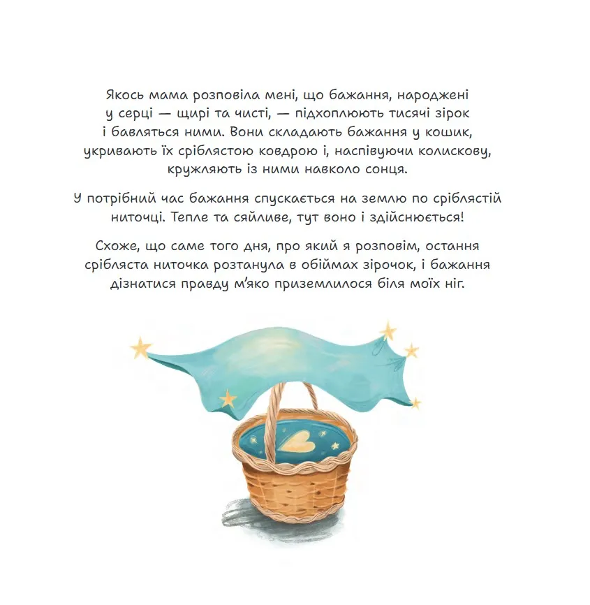 Роман складається з чотирьох частин, і кожна з них має особливу магію. У зрозумілій формі тут подано інструменти виховання щасливої дитини та ідеї для самопізнання. Це не просто історія маленької дівчинки про пошуки щастя, а натхненна інструкція, яка може стати міцним фундаментом емоційного і творчого розвитку дитини. Завдяки спільному читанню книжки дорослі стануть ближчими до дитини, краще відчуватимуть і розумітимуть стан її душі. Дитина порине в атмосферу добра, любові й дружби. Книжка заохотить читача сформувати нове мудре ставлення до життя.