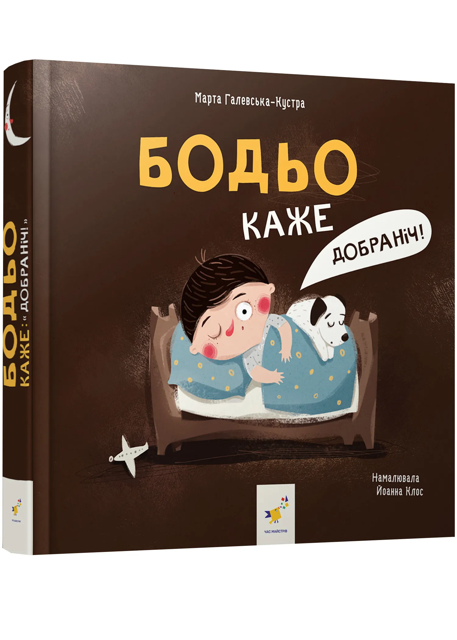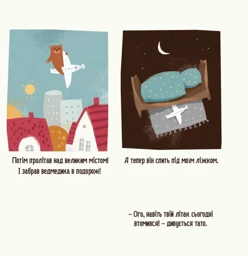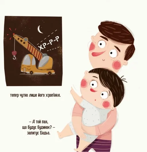 Бодьо хоче бавитися, але настає вечір i всi готуються до сну. Мися вже спить, тому треба поводитися тихо, щоб не розбудити її. А що роблять iншi? Кран увесь день пiднімав вантажі й тепер солодко хропе. Дерево та автівка, яка стоїть на паркінгу, теж вiдпочивають. Тітка, яка святкувала свій день народження, усміхається ввi снi. Ятка з морозивом зачинена, а лiтачок Бодя спокiйно лежить пiд лiжком. Ти теж вимикай світло й засинай: завтра на тебе чекає безліч нових пригод!