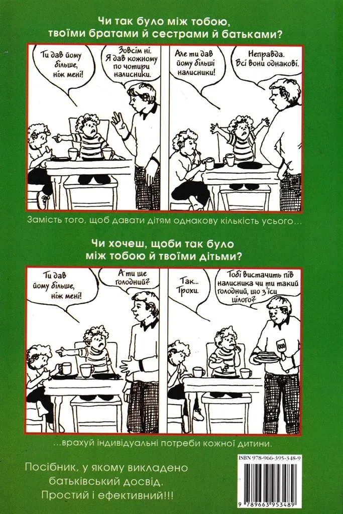 Автори цієї книжки радять, як опанувати своє роздратування, безпорадність, розпач та озброїтися новими методами й вміннями, що допоможуть жити дітям у злагоді. Практичні поради і життєві приклади, проілюстровані дотепними малюнками, стануть у пригоді усім тим, хто, виховуючи дітей, стикається із проблемою суперництва та конфліктів між ними.