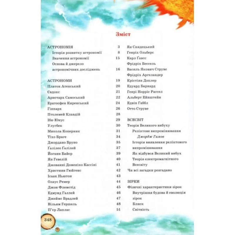 Ця книжка допоможе дитині отримати уявлення про склад Усесвіту. Енциклопедія космосу дасть відповіді на питання стосовно народження нашої галактики й далеких світів, планет, супутників, зірок тощо. Перед читачем постануть чужинецькі й українські науковці, завдяки подвижництву яких суспільство здійснило значний поступ.