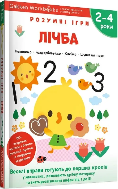 Книжка «Gakken. Розумні ігри. Лічба. 2–4 роки» допоможе вашому малюку розвинути такі потрібні для дошкільної освіти навички й практичні уміння: