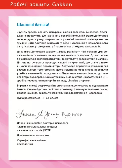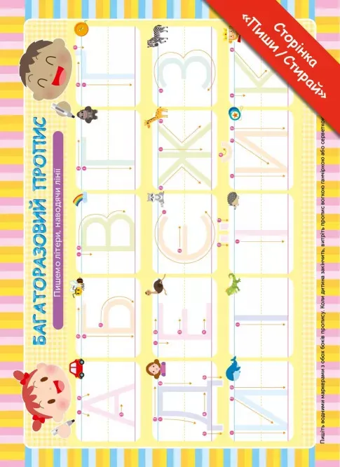 Унікальна японська методика допоможе вашому малюку вивчити українську абетку без проблем! Раннє навчання у вигляді гри закладе міцний фундамент для опанування правил рідної мови у дошкільному віці. Цікаві завдання поступово ускладнюватимуться, щоб дати дитині відчуття поступу. Малюючи, проходячи лабіринти, наводячи лінії, малюк бавитиметься і водночас розвиватиме свої творчі здібності та відточуватиме низку важливих навичок: дрібну моторику, мовлення, творче й критичне мислення.