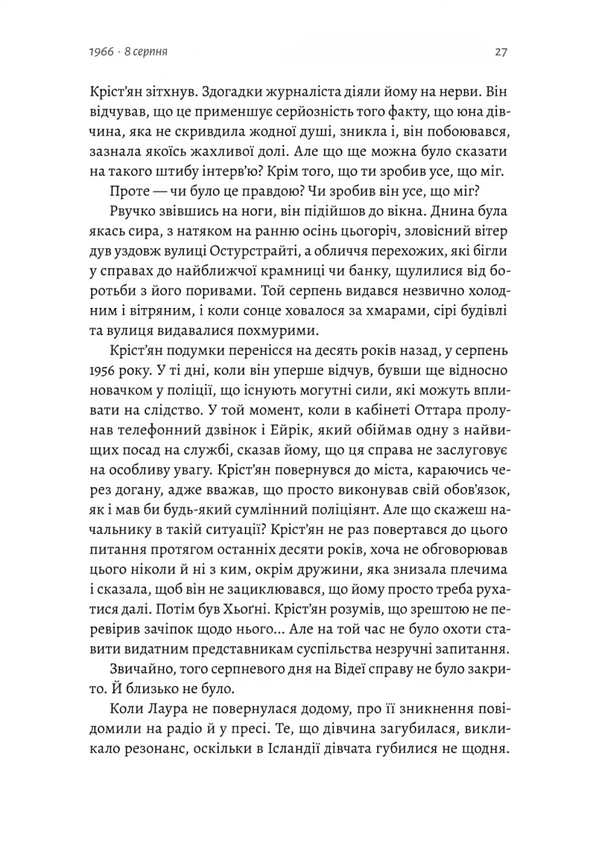 Ісландія, 1956 рік. П’ятнадцятирічна Лаура вирішує провести літо, працюючи в однієї пари на маленькому острові Відей, що неподалік від узбережжя Рейк'явіка. На початку серпня дівчинка безслідно зникає. Минає час, і ця таємниця стає найганебнішою нерозкритою справою в Ісландії. Що сталося з дівчиною? Чи є шанс знайти її живою? Чи, можливо, вона просто покинула острів?
