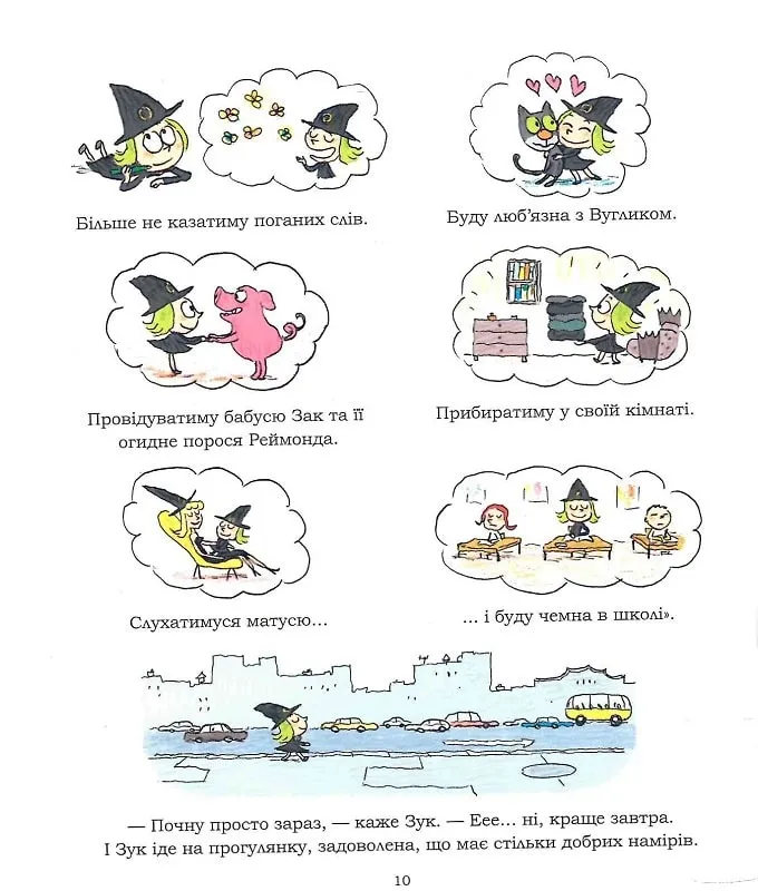 Зук — маленька відьмочка з характером, що має неабиякий талант до пустощів. Тут нічого нового, та цього року вона вирішила, що все має змінитися, а сама вона має бути чемною, розсудливою, доброю і мудрою… Але як же важко лишатися непохитною, коли маєш магічні сили і чари, які рвуться на волю! Добре, що мама Ожинка завжди поруч, щоб допомогти Зук виплутатися з халепи.