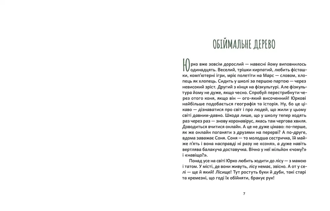 Понад усе Юрко любить їздити до лісу з дідусем, мамою і татом, а згодом — і з сестричкою Сонею. Там, у лісі, родина має своє улюблене дерево — обіймальний дуб, який можна обхопити лише всім разом. Проте одного дня родину роз’єднує війна — тато іде на фронт захищати Україну…