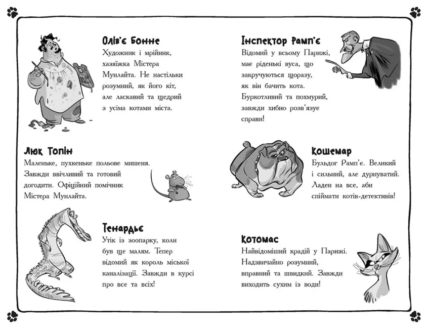 Олів’є Бонне приймає у себе рідного брата Луїзона, щоб той за декілька днів взяв участь у конкурсі на найкращі ковбаски Франції. Маючи при собі два ящики смачнючих ковбасок, чоловіки вирішують залишити їх зберігатися у підвалі будинку. Але вже на наступний ранок ящики опиняються порожніми! Поки Луїзон звинувачує своїх прямих конкурентів, коти-детективи будують власні версії. Для дітей віком від 6 років, які полюбляють детективи і котиків.