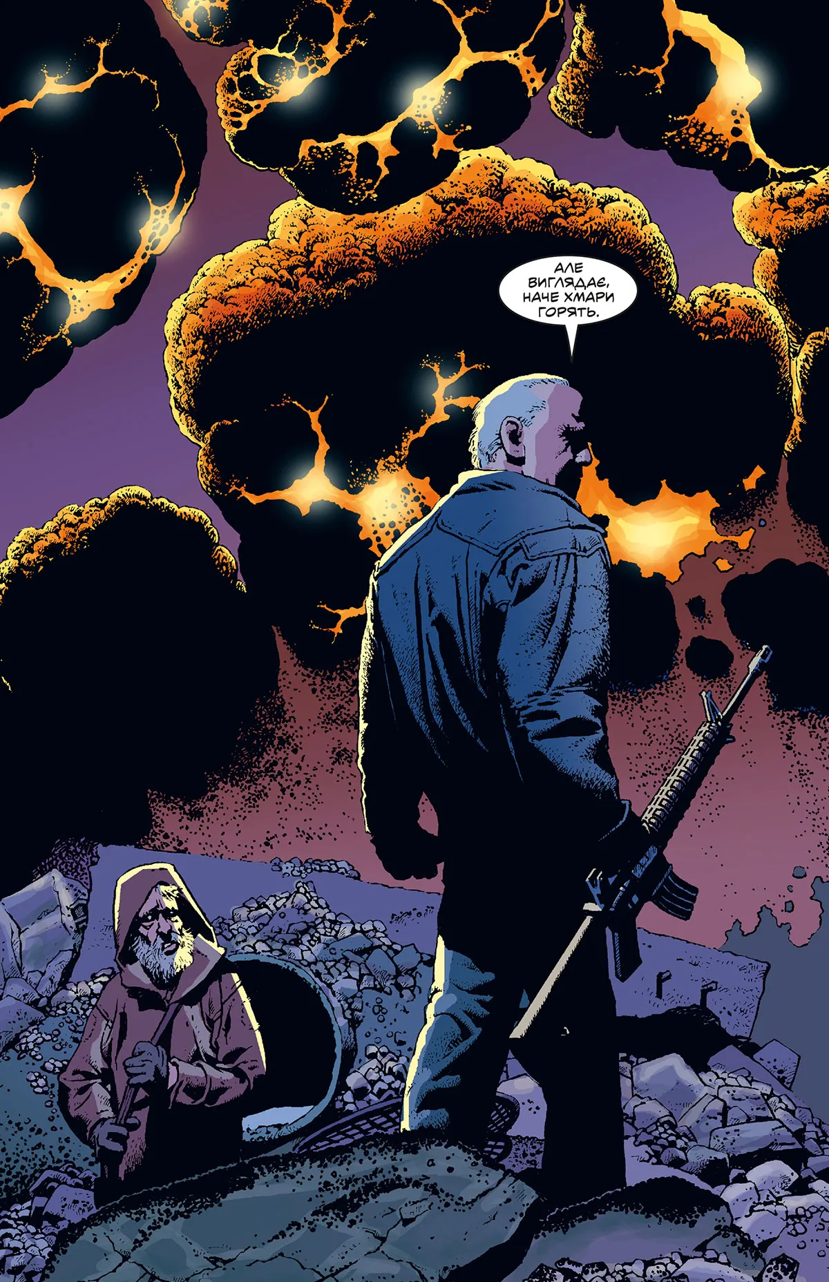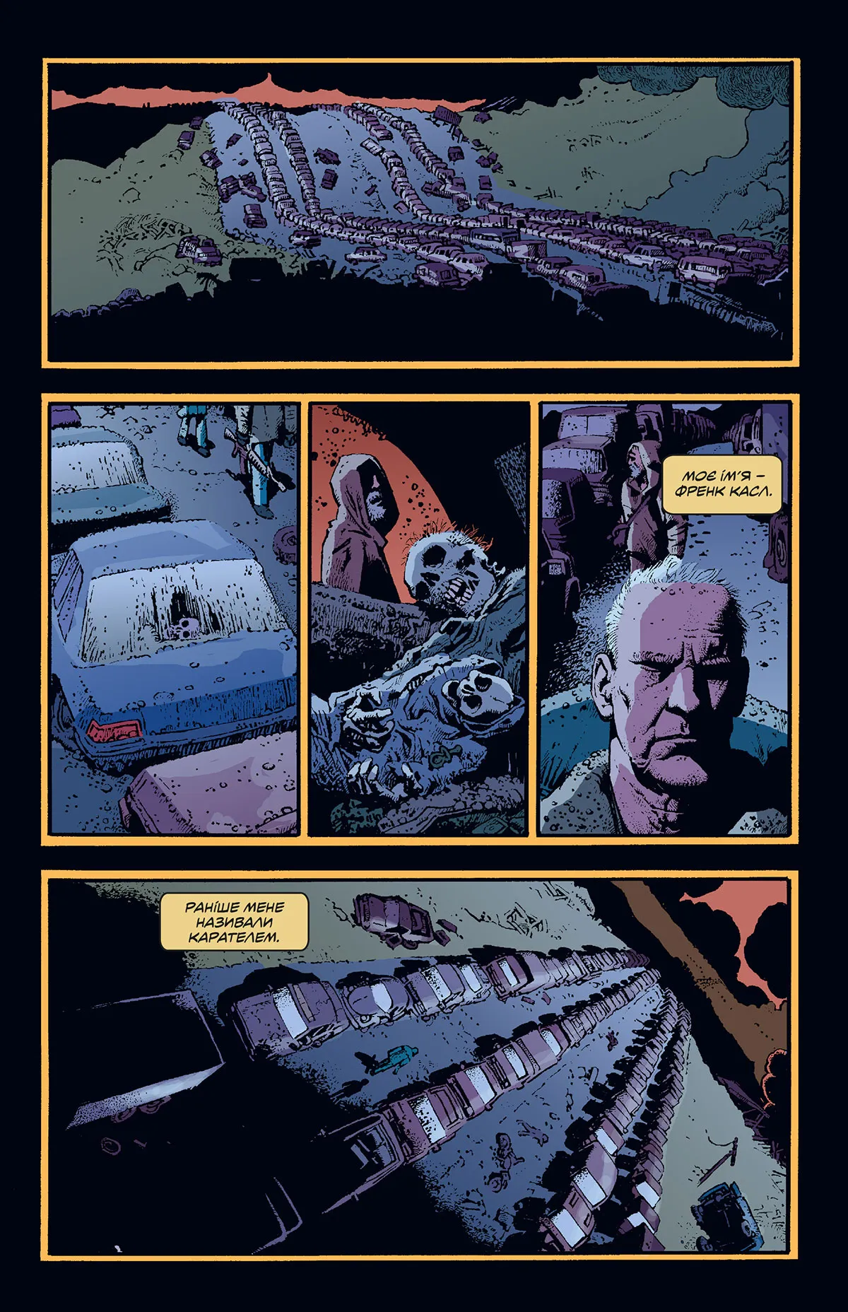 Легендарний ілюстратор Річард Корбен об’єднується зі сценаристом Карателя – Ґартом Еннісом, в останній битві Френка Касла! У божевільному світі після ядерної війни, Каратель може бути єдиною людиною на Землі, що зберегла розум. Він прямує додому, туди, де все почалося, і нехай Бог допоможе кожному, хто стане на його шляху.
