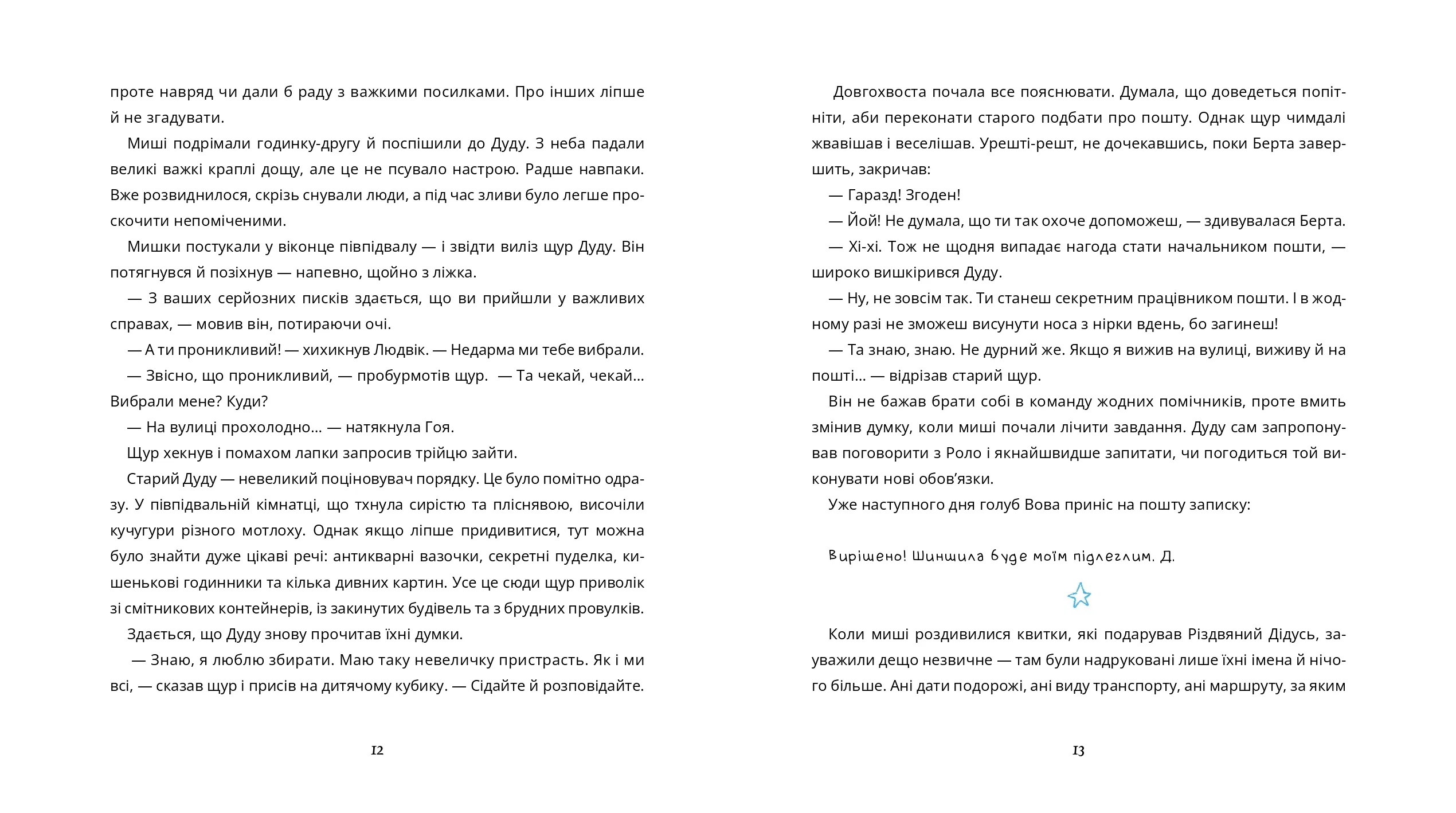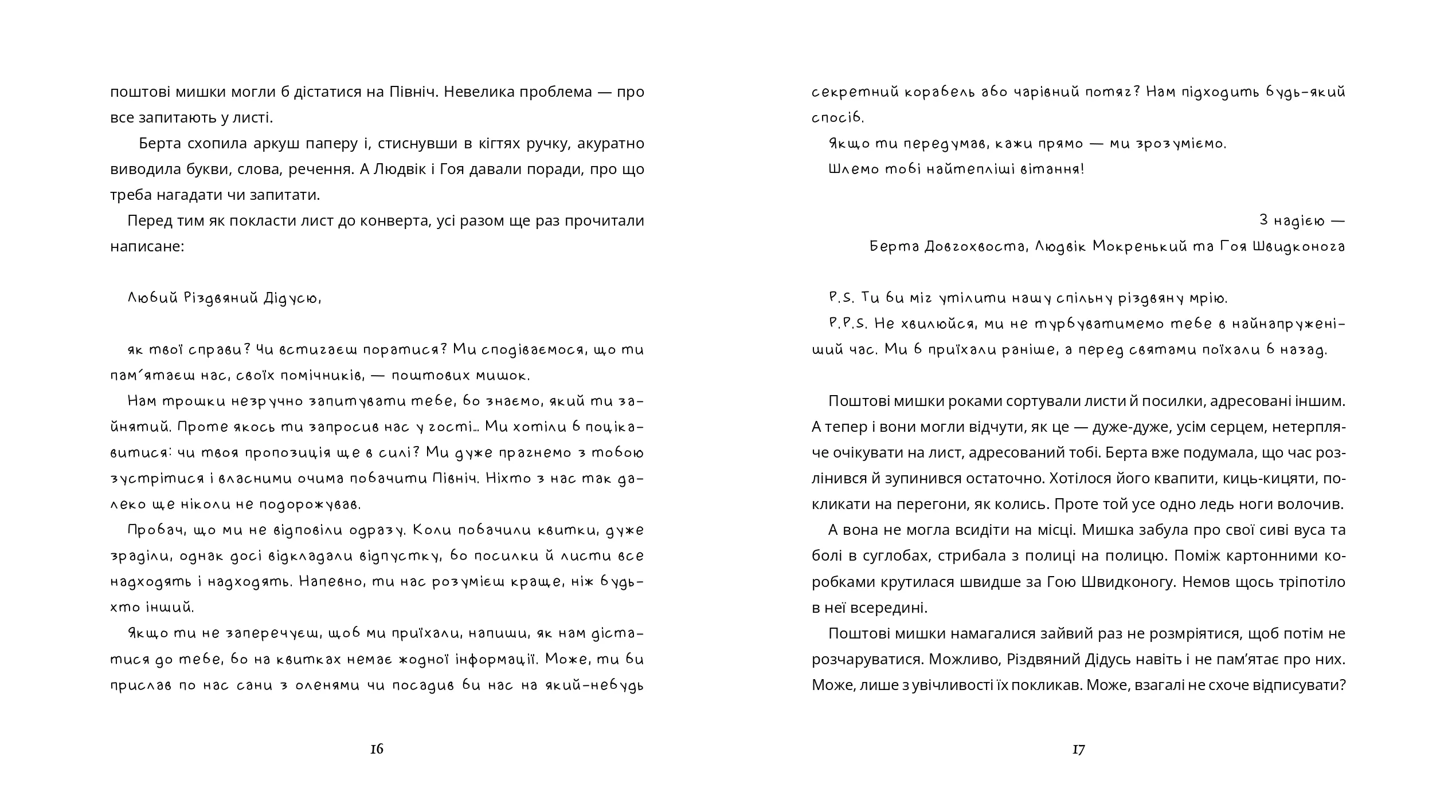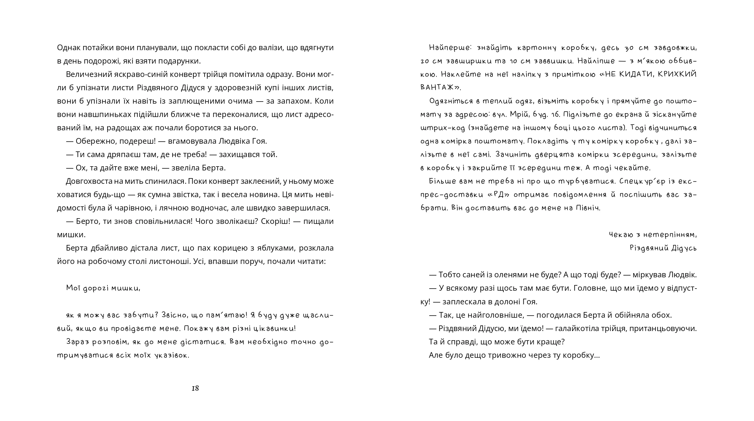 Мишки завжди уявляли, що він разом із коман- дою крутих помічників живе у затишній хатині, яка пахне печивом і шоколадом. Однак реальність зовсім інша. Дім Різдвяного Дідуся більше схожий на фабрику чи лабораторію, де про все піклуються роботи й комп’ютери. Дідусь задоволений — залишається вдосталь часу на сон, йогу, танці та інші розваги, але поштові мишки з цим не можуть змиритися. Комп’ютери ж покладаються не на почуття, а на алгоритми. Хто вникне в дитячі мрії та надішле дитині найбажаніший подарунок?