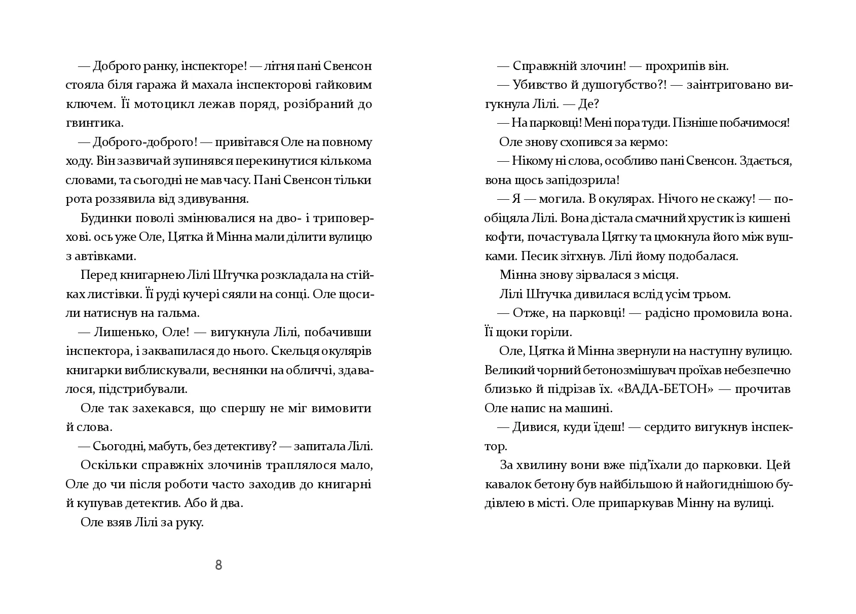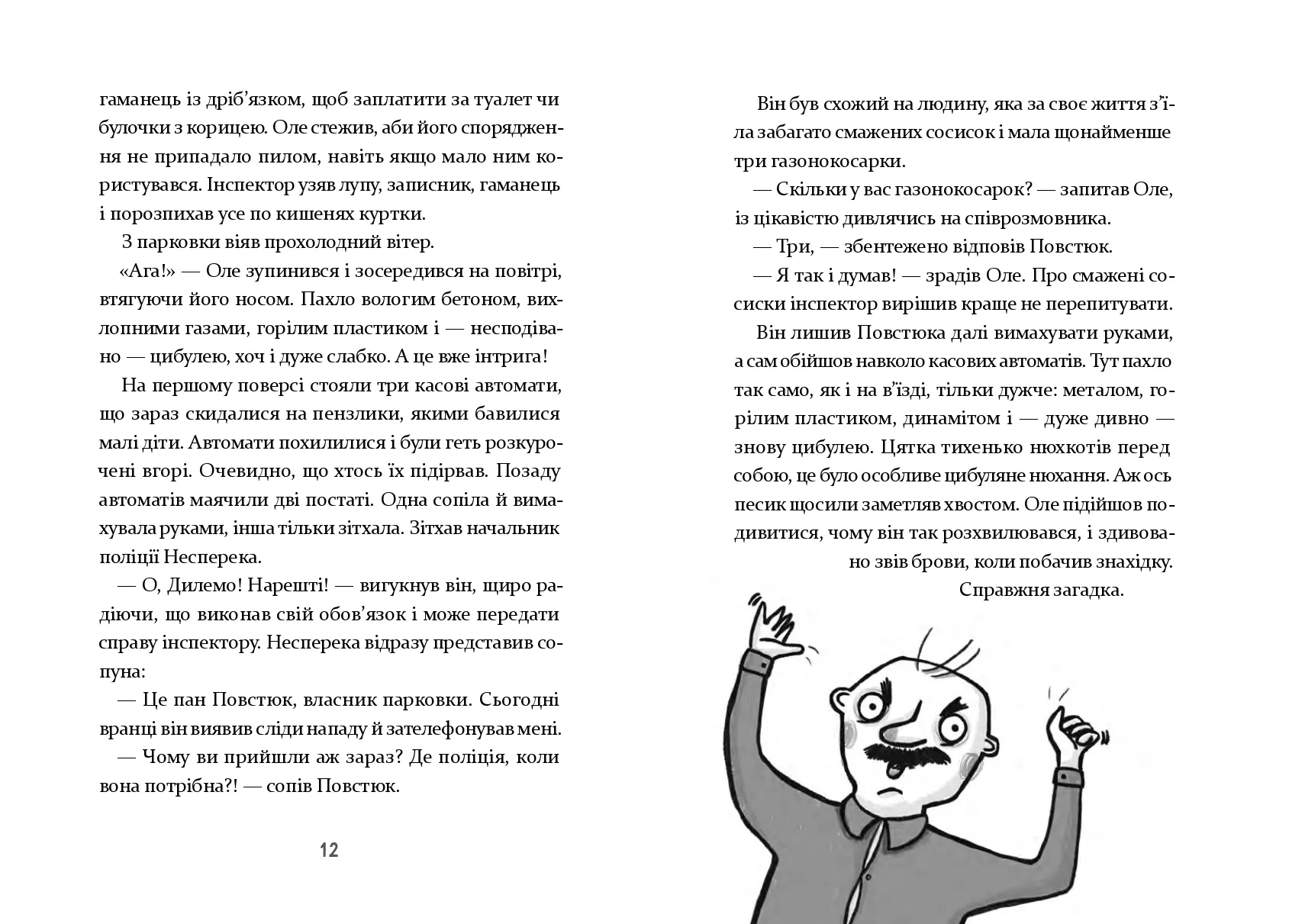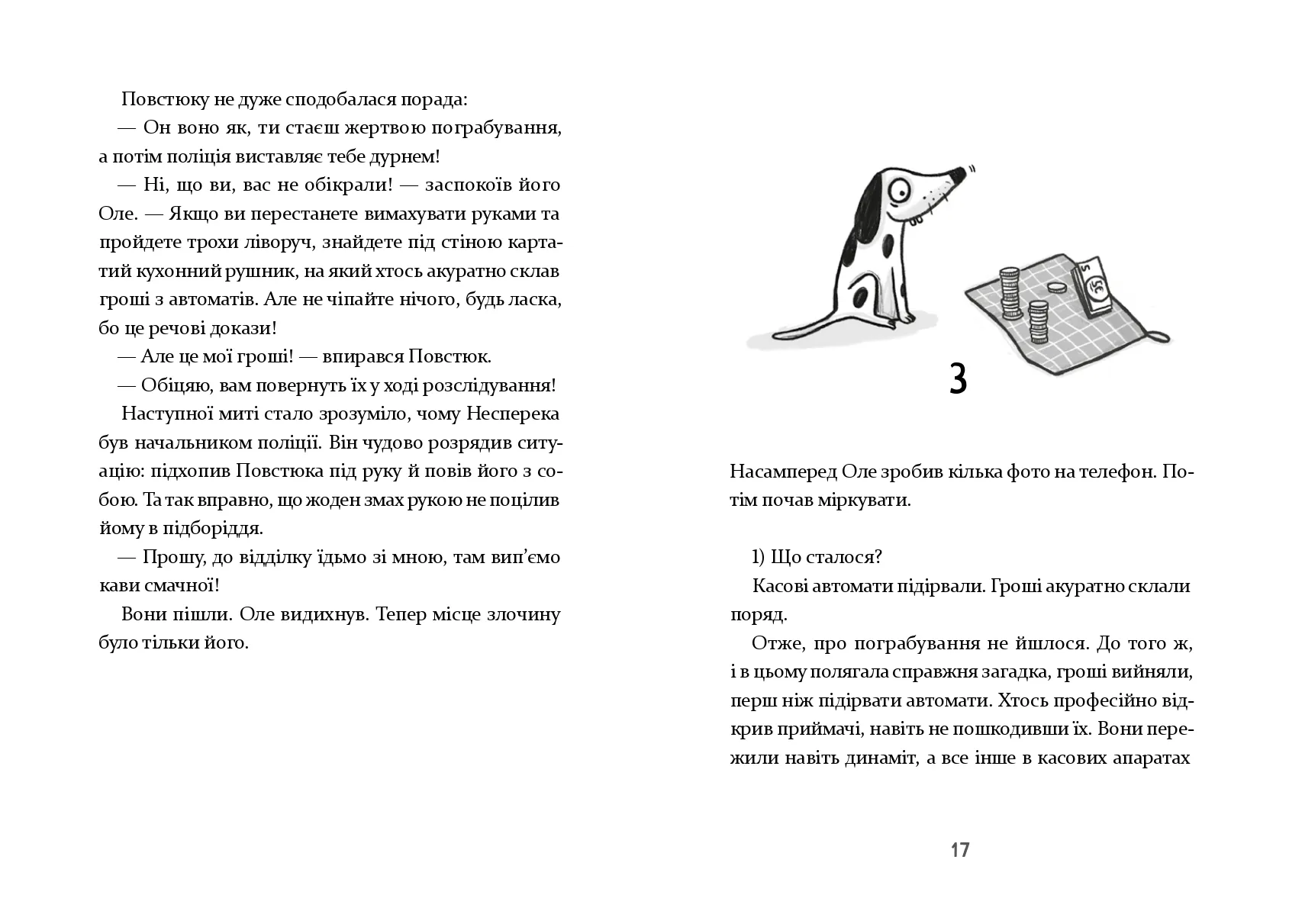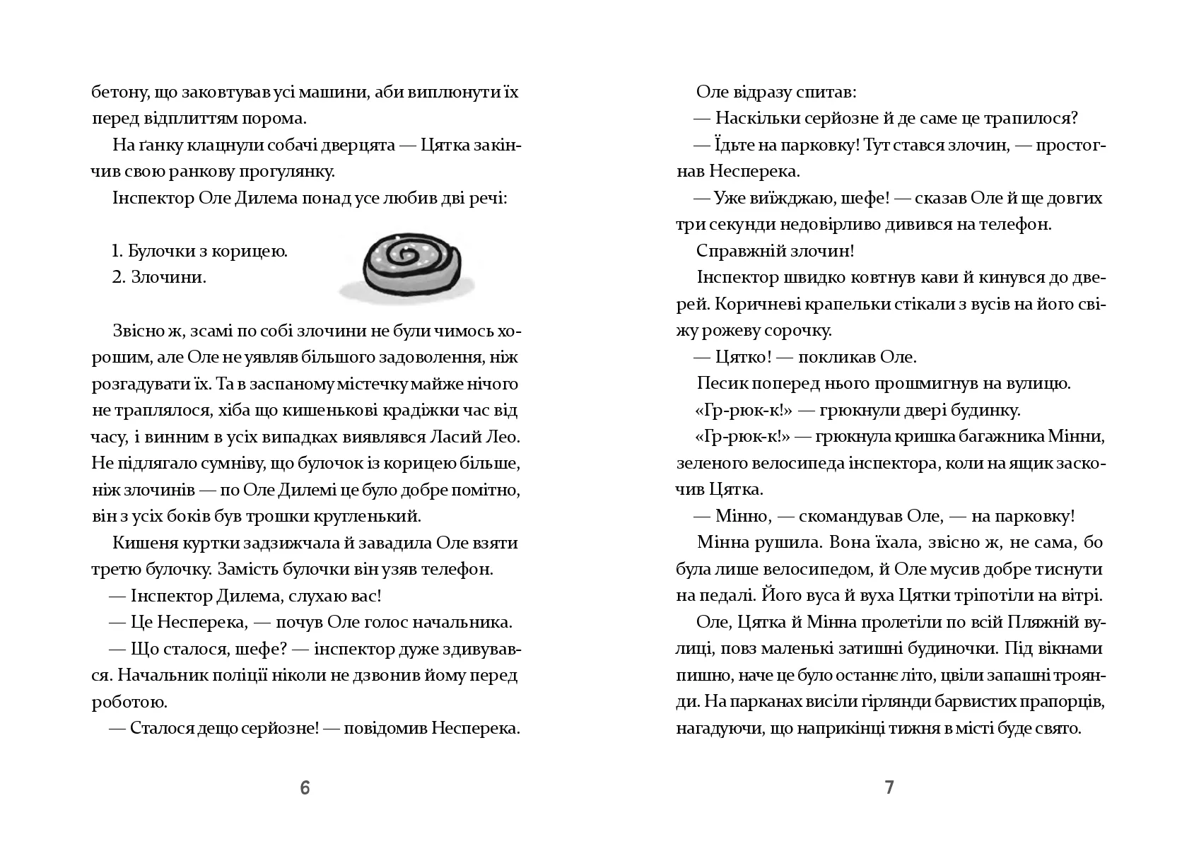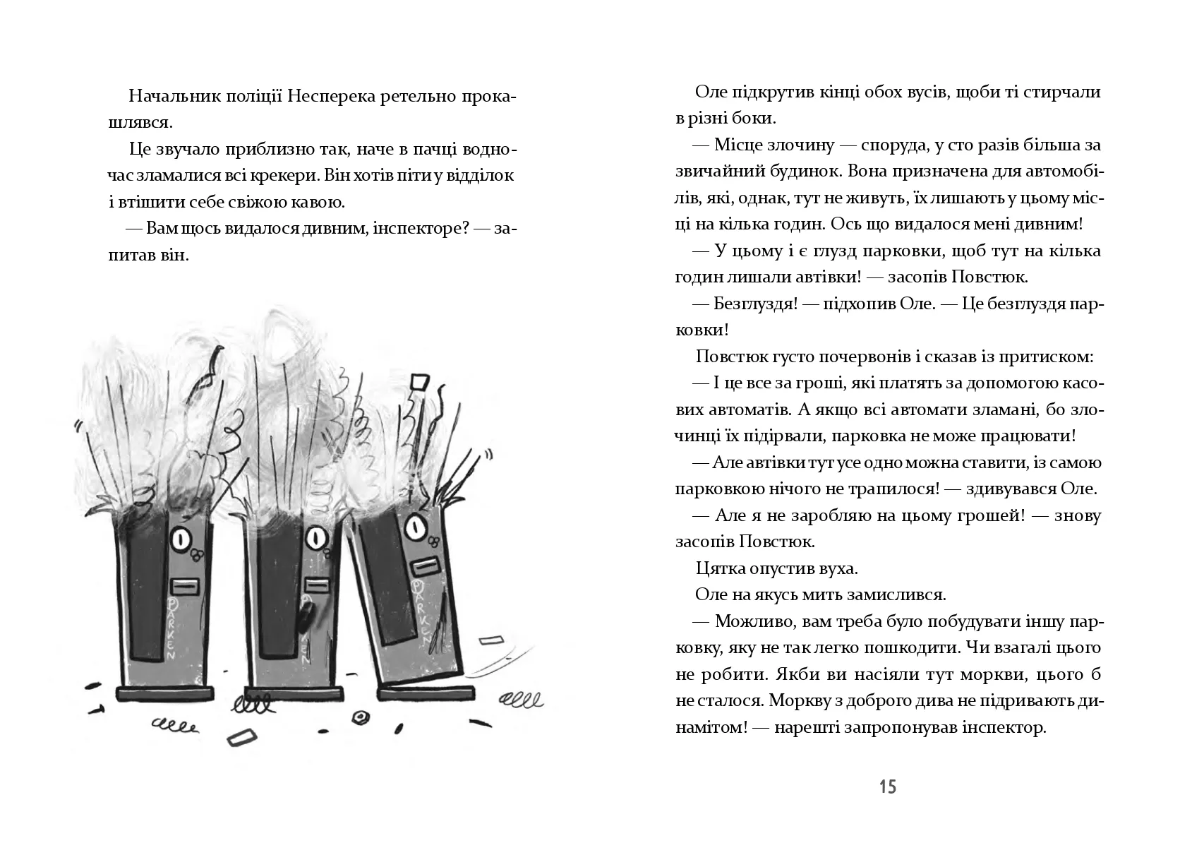 Мешканці острівного містечка Піщане жили тихим і спокійним життям. Навіть занадто спокійним, вважав інспектор Піщанського відділку поліції Оле Дилема. Аж ось одного дня на острові стався справжній злочин — хтось підірвав касові автомати на щойно збудованій парковці. А це вже щось! Інспектор Дилема миттю застрибнув на велосипед, посадив на багажник поліцейського песика Цятку й помчав на місце злочину. Як би дивно не поводилися свідки, інспектор докопається до правди!