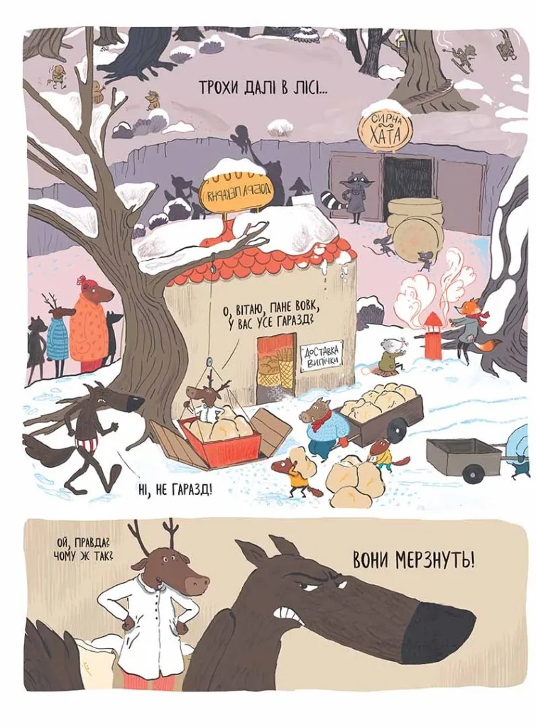 У засніженому лісі вовк знову всіх лякає! «Вони мерзнуть!»- каже він, пояснюючи причину свого поганого настрою .