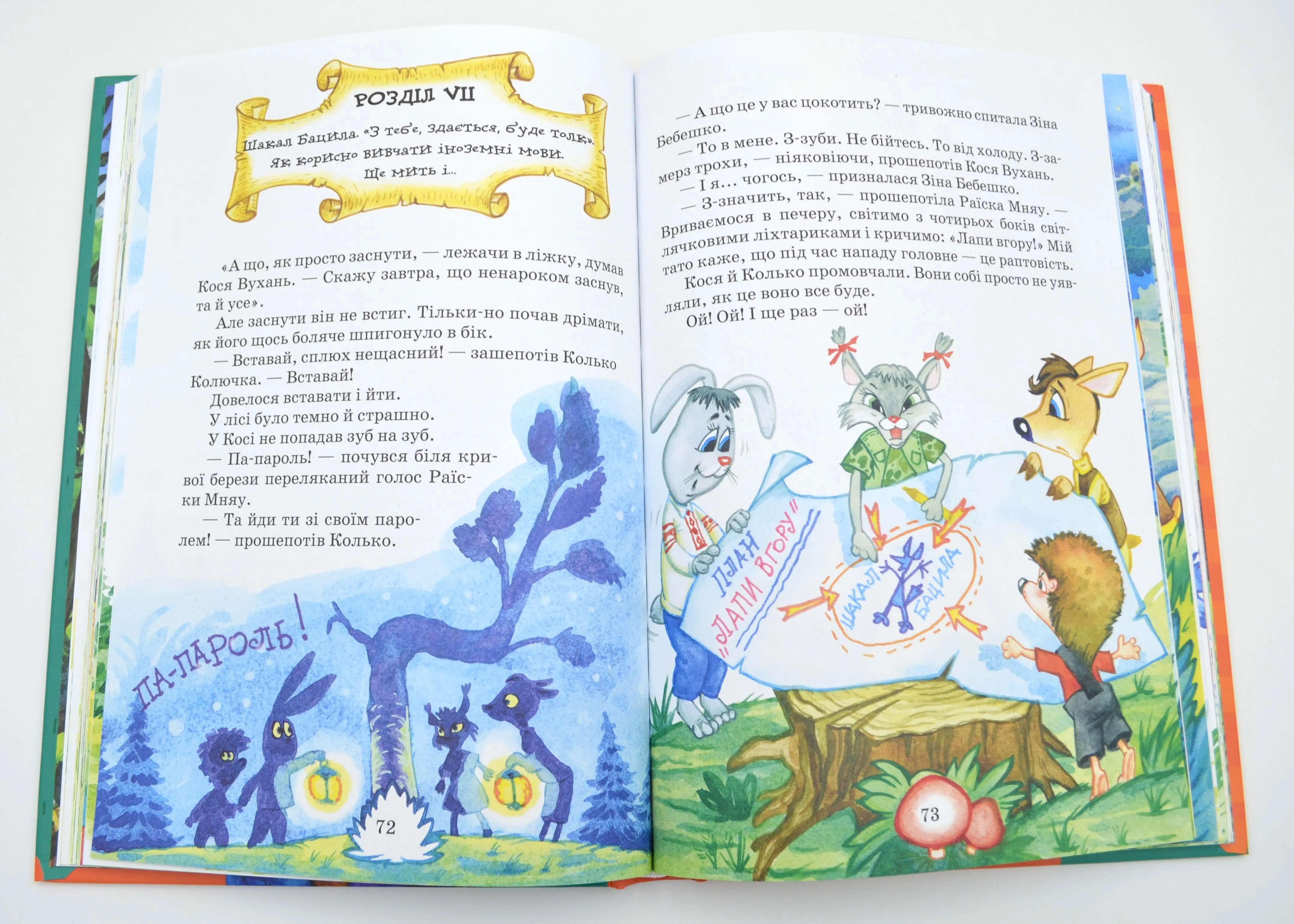 У першій частині, «Сонце серед ночі», зайчик Кося Вухань та їжачок Колько Колючка розпочинають навчання у лісовій школі. Пригоди трапляються вже з першого шкільного дня, адже в наших друзів зʼявляється серйозна проблема - кудись зникають їхні речі. А потім і самі учні лісової школи. Під підозрою опиняються всі, навіть найдобріший учитель музики Бегемот Гіпопотамович. Звірята вирішують знайти злодія й беруться до роботи.У другій частині, «Пригоди в Павутинії», навчальний процес входить у звичне русло. Коли звірята вже звикли до шкільних буднів і налагодили взаємини, у їхнє спокійне життя приходить новенька учениця — Хрюша Кабанюк. А разом із нею — ще більше спокою, бо весь клас заразився якоюсь дивною хворобою, коли хочеться тільки позіхати, спати і нічого не робити. Наші герої розуміють, що потрібно негайно рятувати однокласників, і починають розплутувати справу.