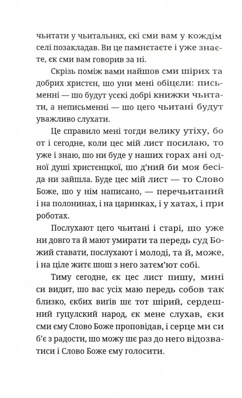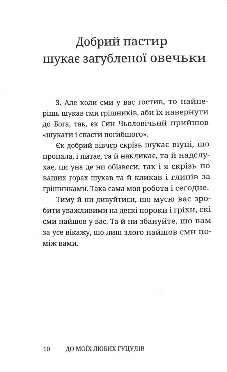 З великої поваги і любові до адресатів Андрей Шептицький написав своє послання гуцульським діалектом, який збережено в нашому виданні. Також тут уміщено текст української письменниці Люби-Параскевії Стринадюк, яка в художньому стилі описує візит Станіславівського єпископа на Гуцульщину, звідки вона родом. Тому передає враження вже самих гуцулів від знайомства зі своїм духовним пастирем.