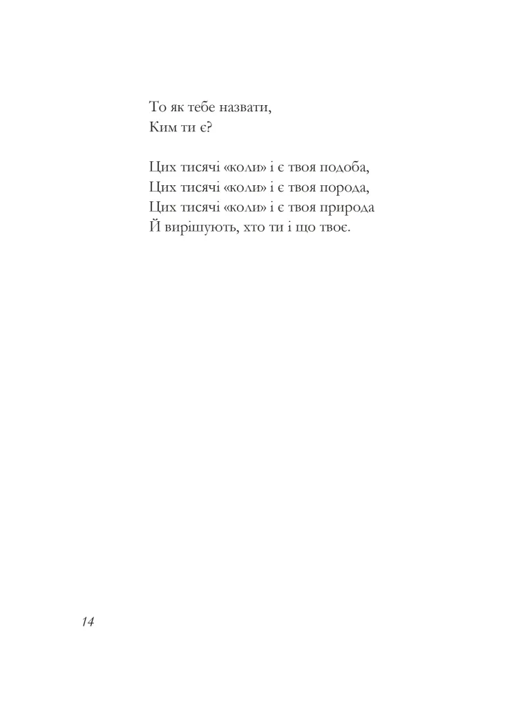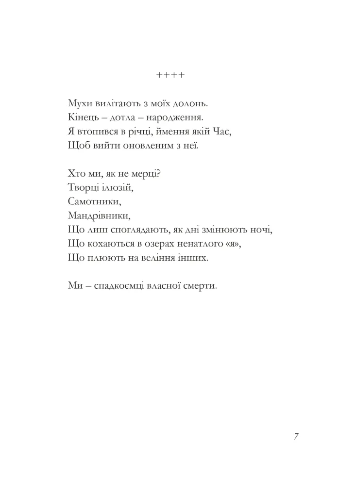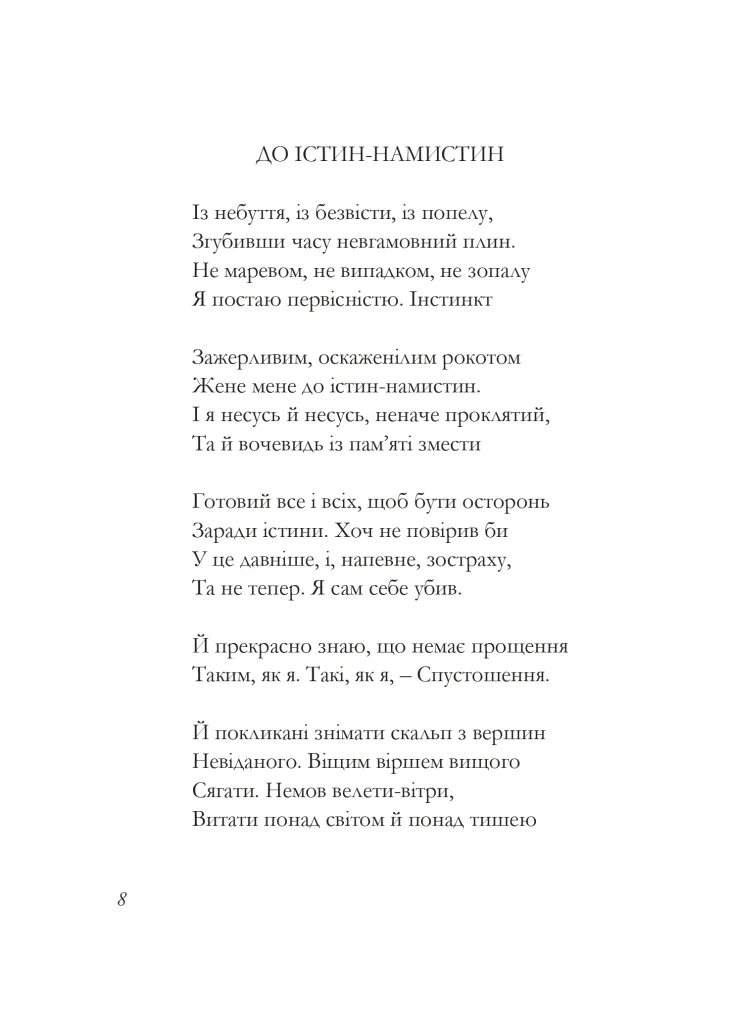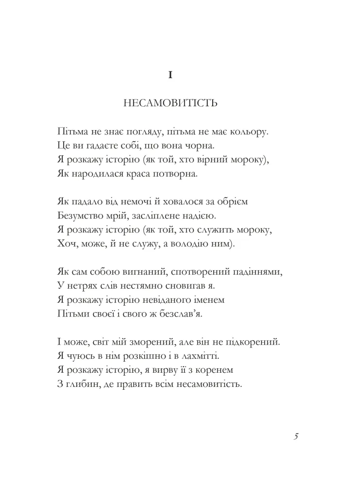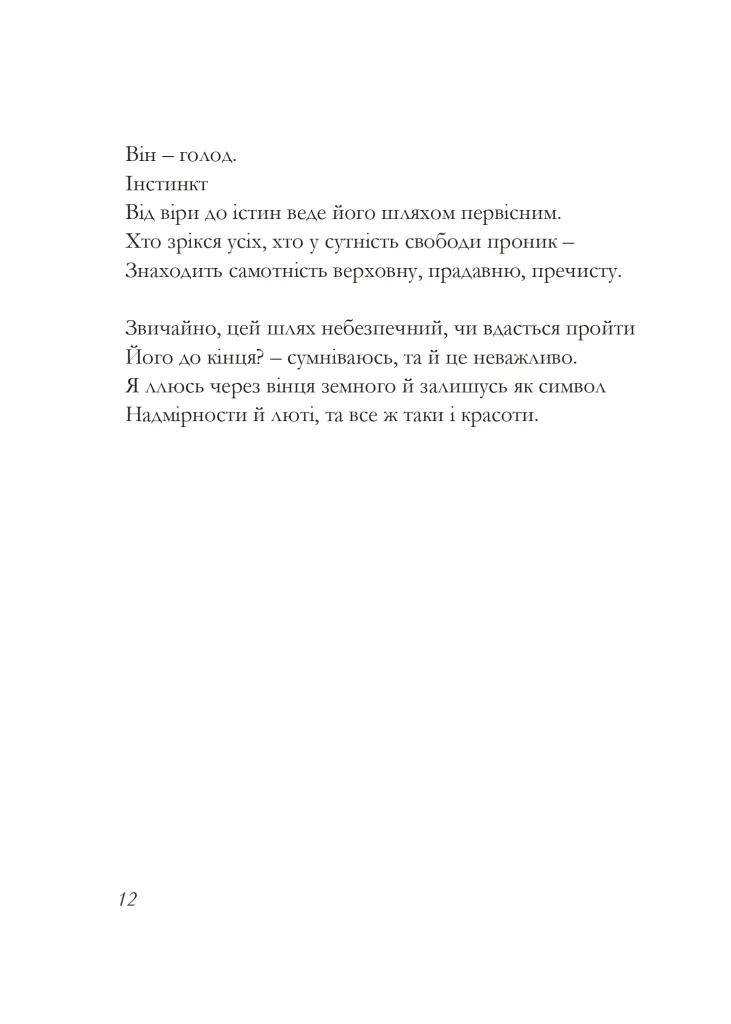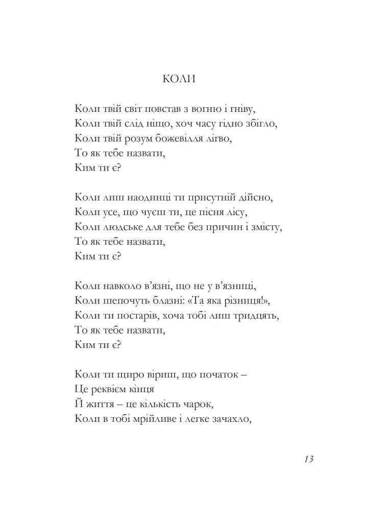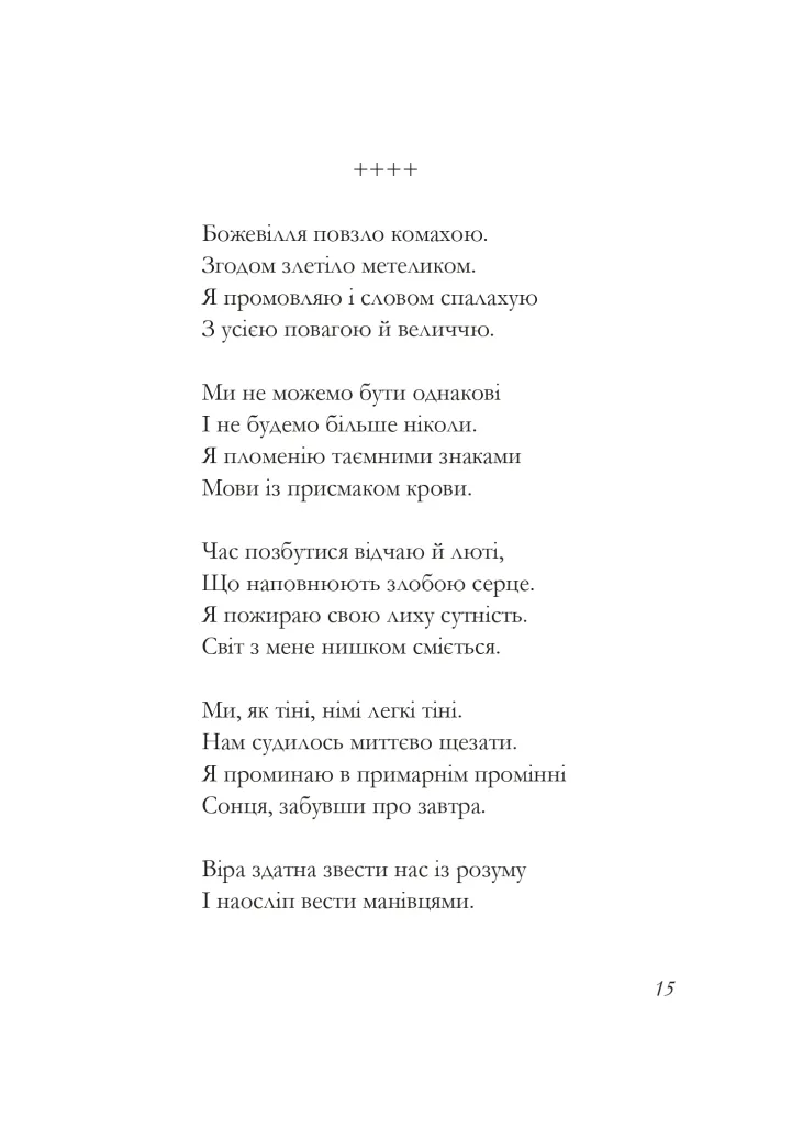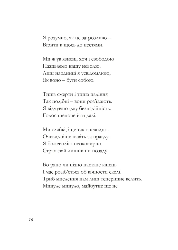 Вірші під цією обкладинкою безкомпромісні, вони відображають драматичний і болісний пошук, що до певної міри стосується нас усіх. А що в цих віршах немає страху, то вони можуть лякати. Ян Веріх казав, що страх, — це як відчуття дотику в пальцях: якщо його нема — вхопишся за полум’я й згорить рука…