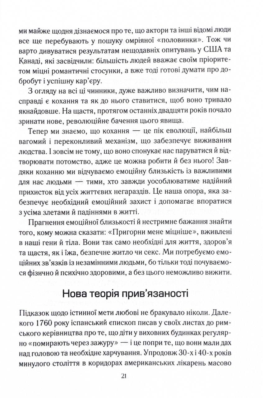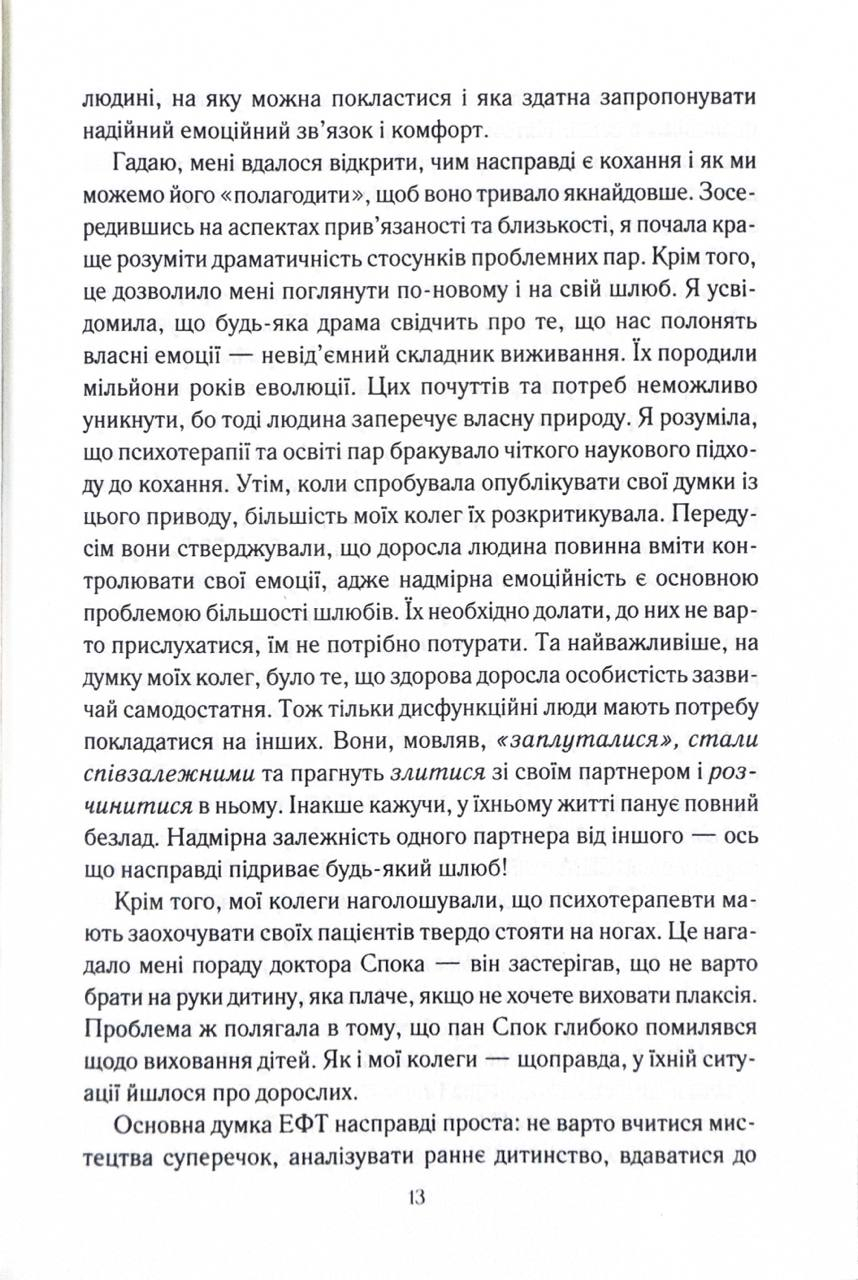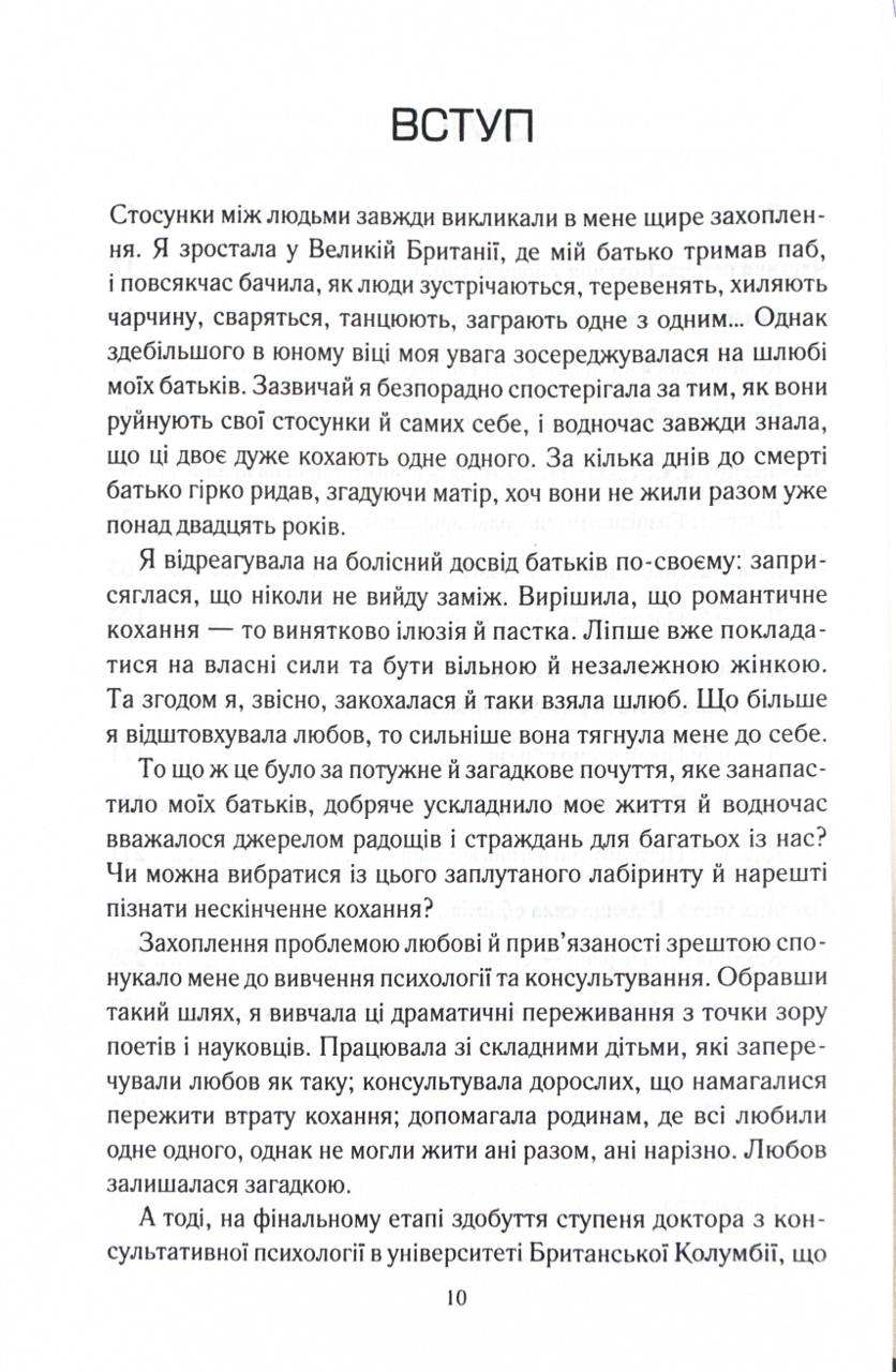 З дитинства ми мріємо про «кохання з першого погляду» та прагнемо «жити довго й щасливо». Проте персонажі казок ніколи не з’ясовують, чия черга виносити сміття чи мити посуд. Але чи можлива така ідилія в реальних стосунках? Докторка Сью Джонсон відкриває перед читачами абсолютно новий, сповнений любові світ щасливих і гармонійних стосунків. Її методи будуть корисними для всіх без винятку пар — молодих і літніх, одружених і ні, щасливих і нещасних, гетеро- і гомосексуальних, — для всіх, хто прагне зберегти кохання упродовж усього життя.