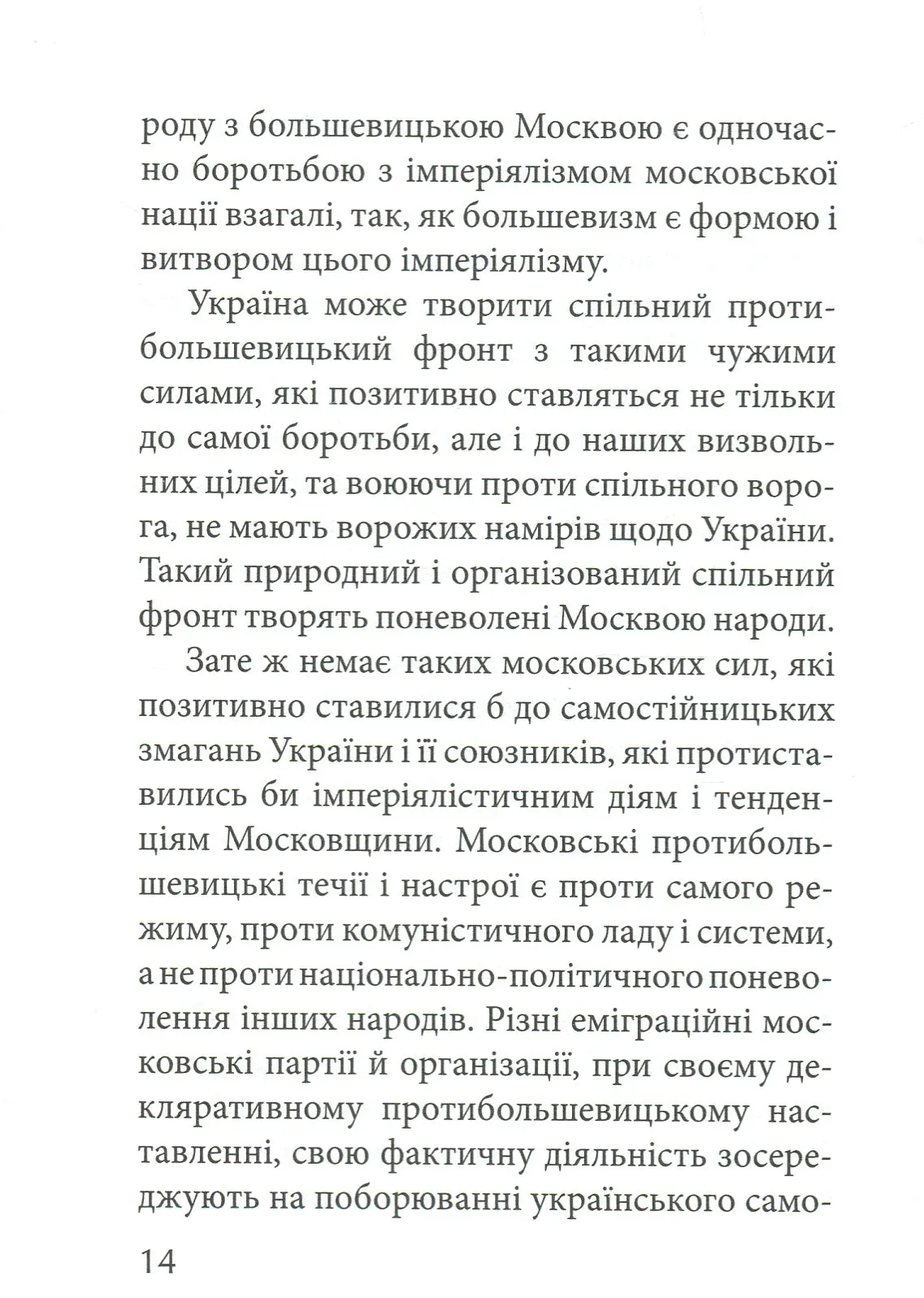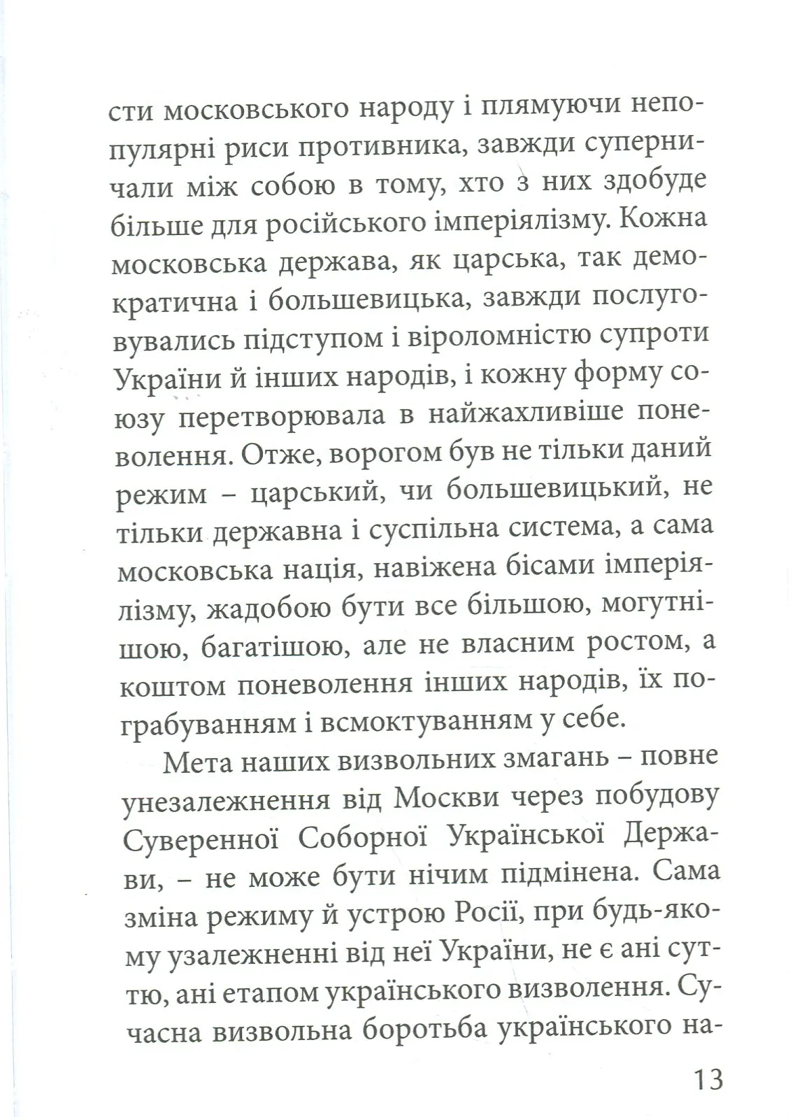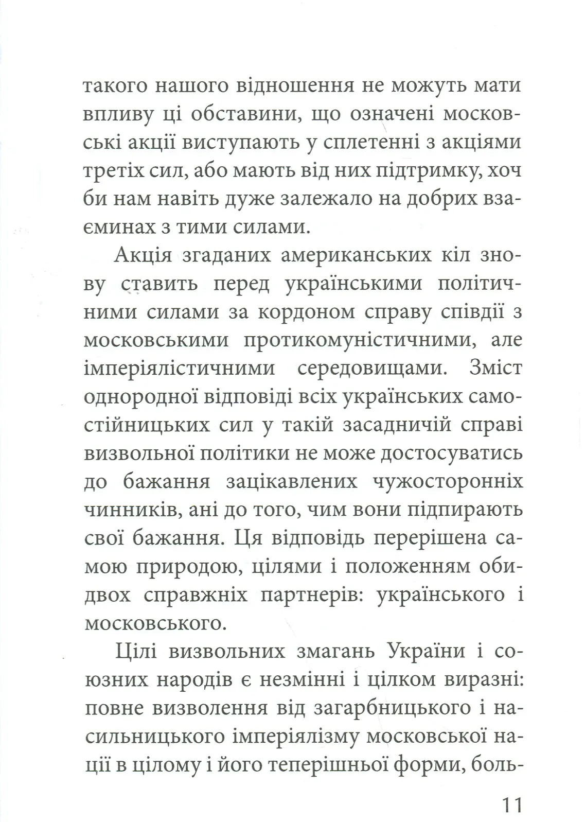 1) розвал московської імперії.2) сильна Українська Національна Держава.Якщо реалізація другого пункту залежить виключно від нас, то перший реалізувати без підтримки заходу зараз буде майже не реально. Брюссель і Вашингтон бояться розвалу Росії. Щоб нейтралізувати ці страхи та заручитися відповідною підтримкою, погляньмо в алгоритми дій наших попередників.