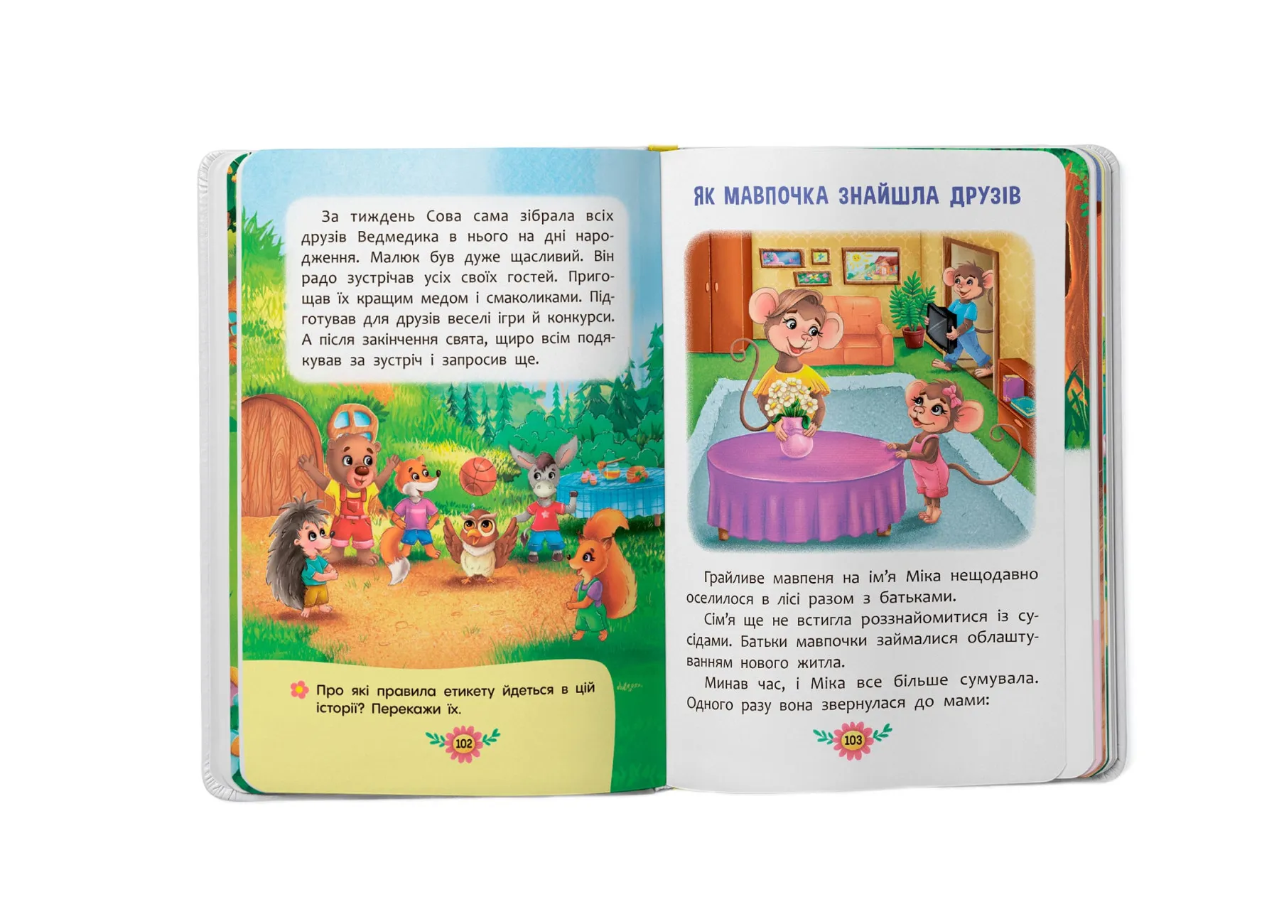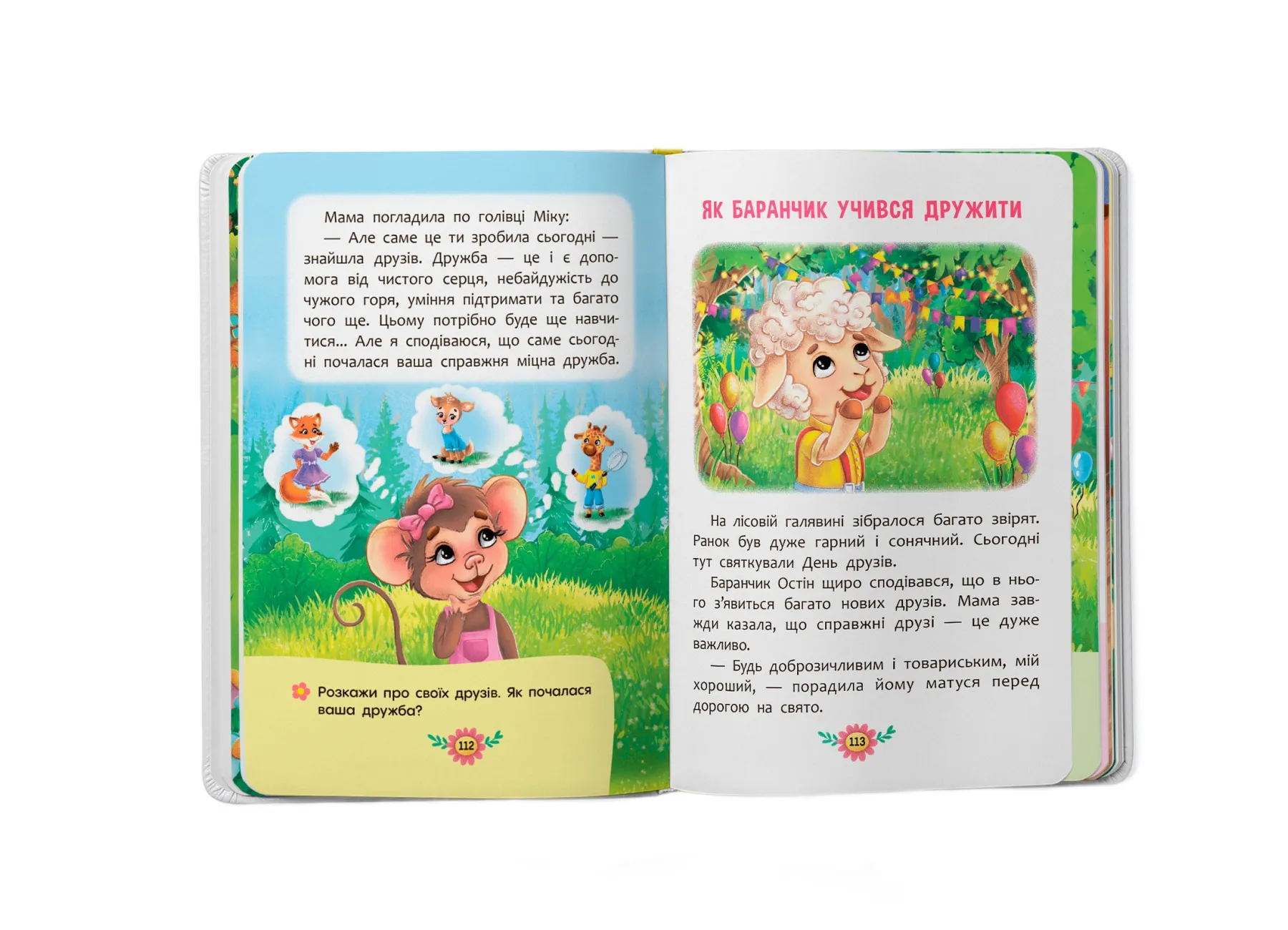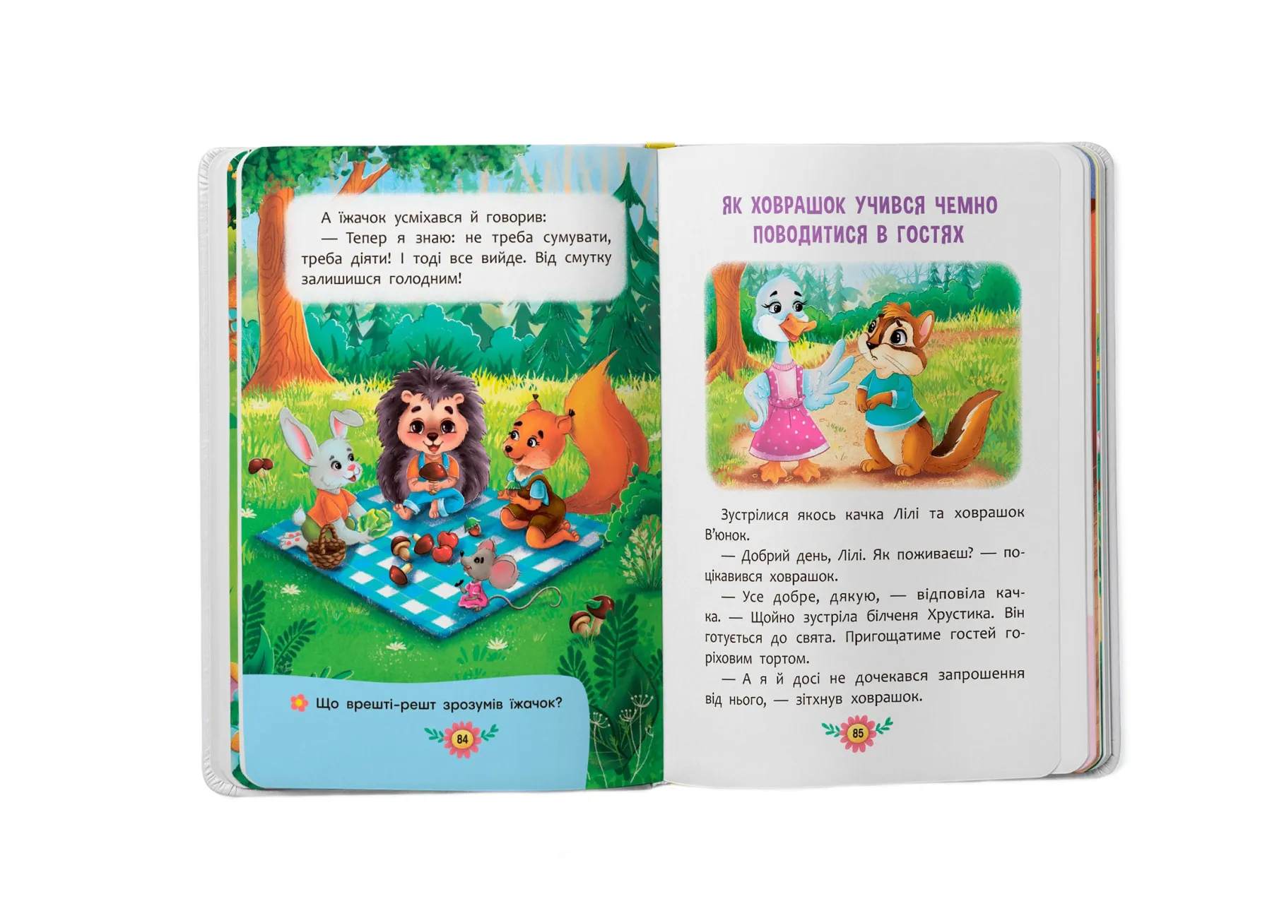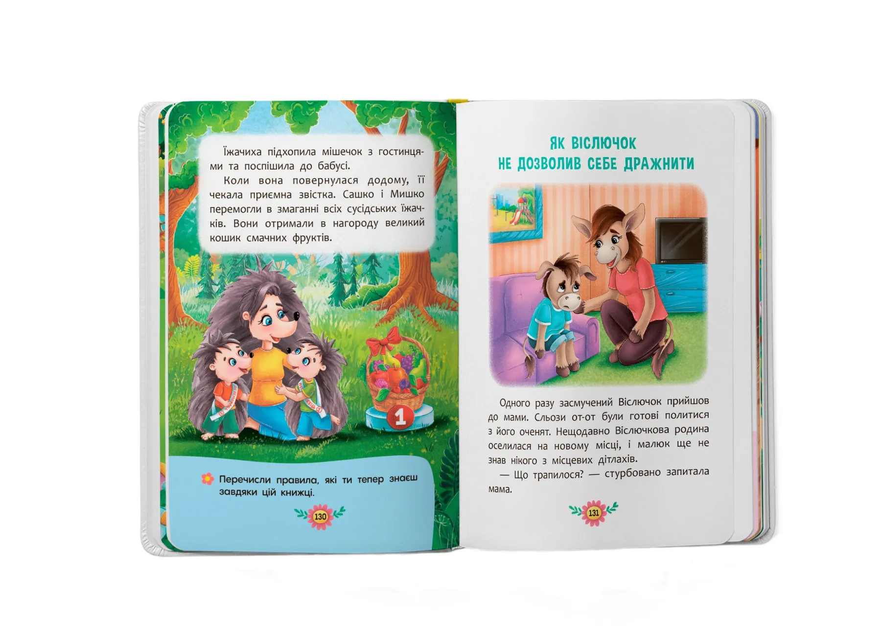 У цій книзі ви знайдете 15 простих і водночас дуже повчальних історій, що розповідають про складне простою мовою. Слухаючи казки, малюк зможе асоціювати себе з головним героєм, разом з ним проживати ситуації та шукати рішення, безпечно й ефективно переймати життєвий досвід. Виховальні казки допоможуть дітям соціалізуватися та знайти друзів, подолати страхи й навчитися керувати своїми емоціями, познайомлять з правилами етикету та розкажуть, як відстоювати свої інтереси й чинити опір агресивній поведінці одноліток. Книжку адресовано дітям дошкільного та молодшого шкільного віку і їхнім турботливим батькам.