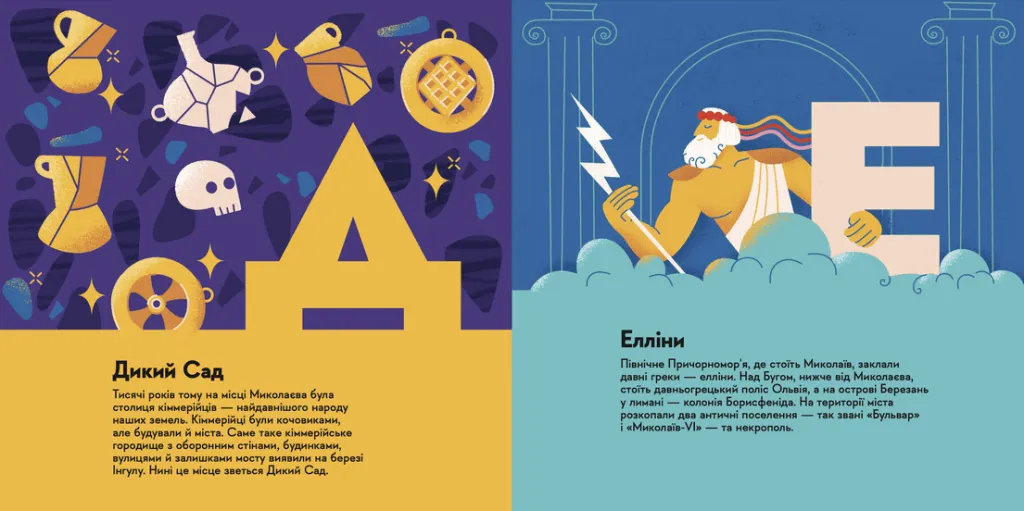Привіт! Я — книжечка про місто великої корабельної слави — Миколаїв. Десятки століть тому, ще до появи козаків, у місцевих портах швартувались кіммерійці, елліни і скіфи. Мої автори пройшлися цими старенькими вуличками, допитали кожну корабельню і створили… першу абетку про місто на воді. Кожна літера — це ДНК міста, унікальна риса, без якої немислима його захоплива історія.
