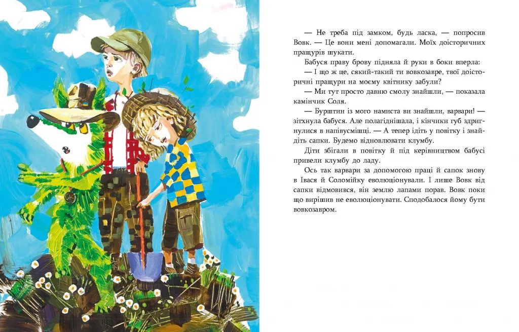 Що робити батькам, які мріють виховати відповідальну, соціально активну дитину? А дитина ця не те що виховуватись, а навіть суп не бажає їсти? Без паніки! Запросіть до себе додому зеленого вовка. Цей добрий звір обов'язково навчить справлятися із різними життєвими ситуаціями, та ще й з уроками допоможе! Але будьте пильними, бо вовк — це вам не іграшка: може і хворим прикинутися, щоб лікуватися лікарською ковбасою, і святкові туфлі зжувати, навіть на вовкозавра перетворитися, а ще бабусин квітник перекопати у пошуках своїх далеких предків. Приєднуйтеся до неймовірних пригод і постарайтеся не луснути від сміху.